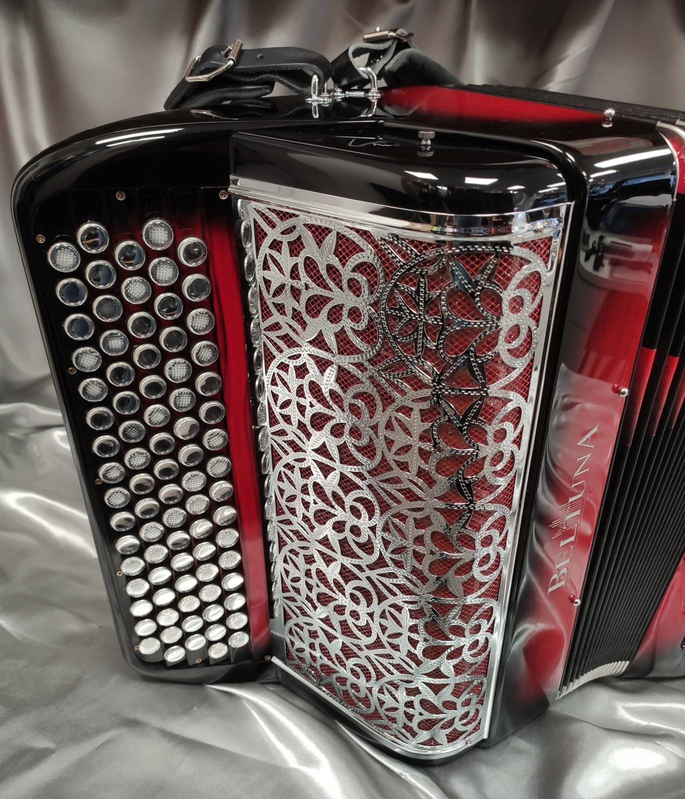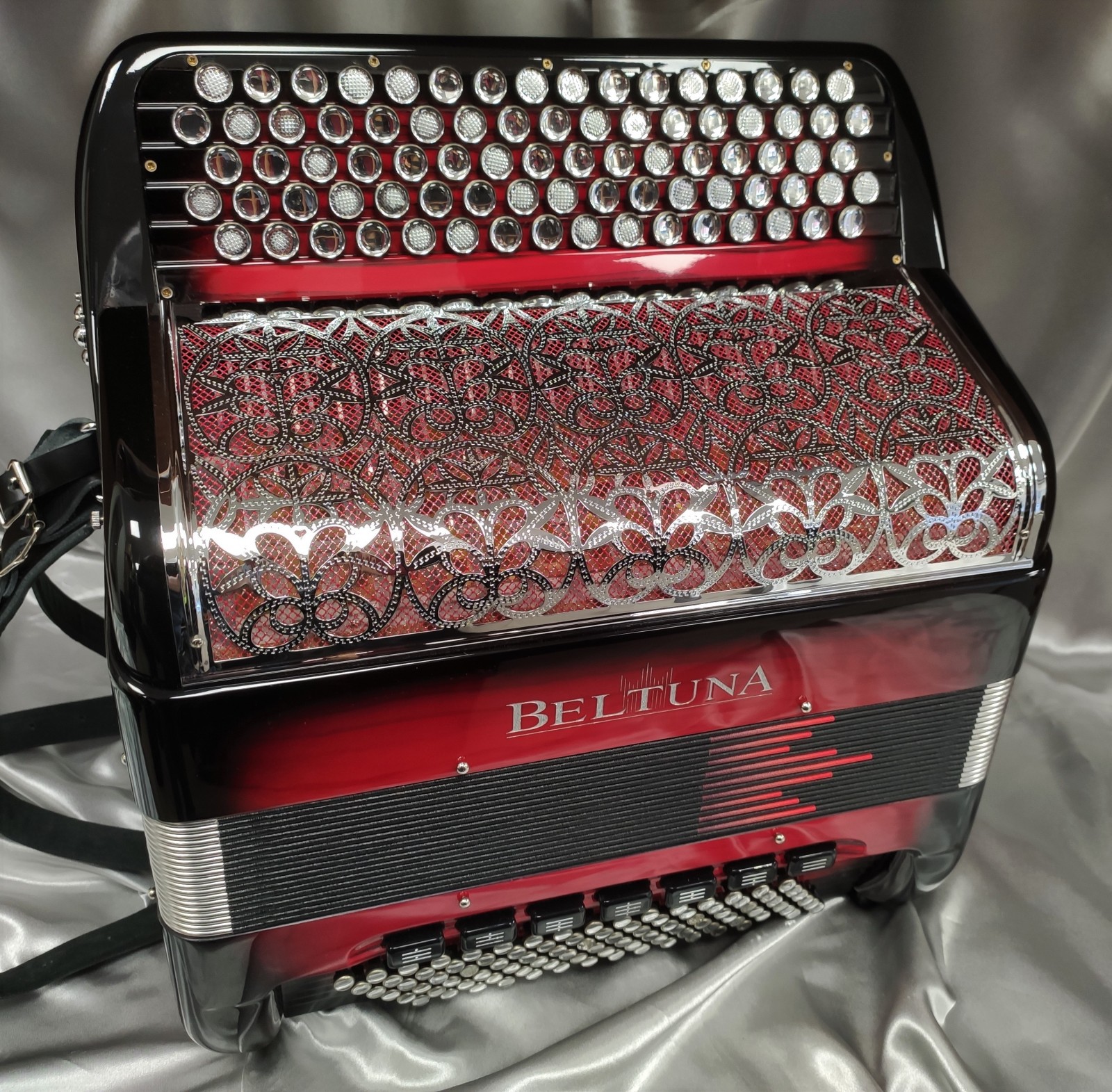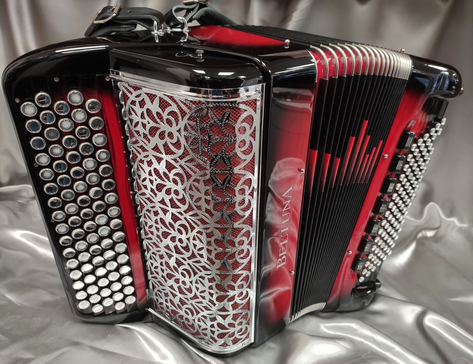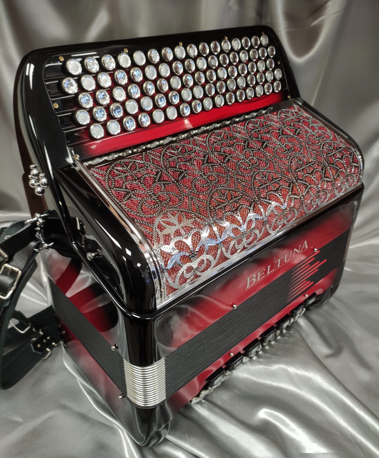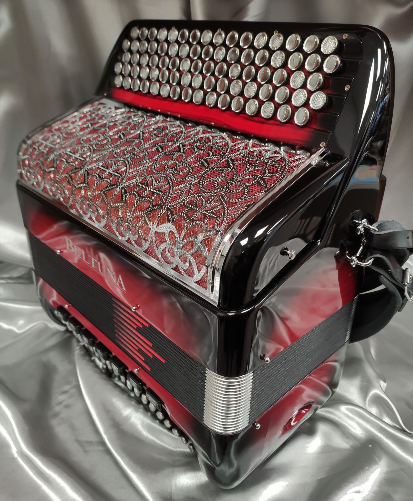 LEADER Ce modèle "2050" à 4 voix avec double boite de resonance et 96 basses. Modèle Beltuna haut de gamme de la ligne LEADER : des accordéons professionnels avec boîte de résonance et voix GHV. La Ligne LEADER se distingue par la présence du système Amplisound, qui permet de changer le timbre du son des voix situées en boite de résonance. Instrument idéal pour les compositions raffinées en style jazz et classique... Disponible sur commande pour une personalisation et visible à l'atelier.