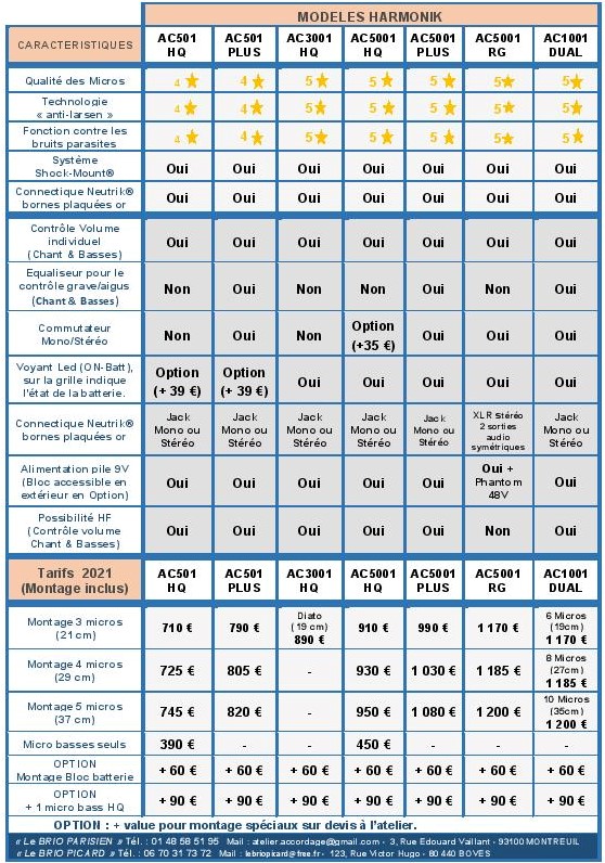 Découvrez la gamme de micros Harmonik de qualité professionnelle que nous pouvons installer sur votre accordéon. L'installation ne sera possible qu'aprés la validation technique de faisabilité de l'installation par l'atelier.N'hésitez pas à nous contacterpour un RDV à l'atelier pour un devis ou pour d'autres informations.