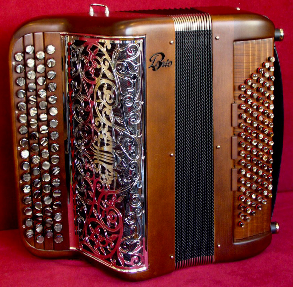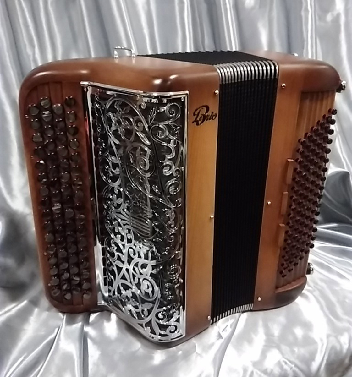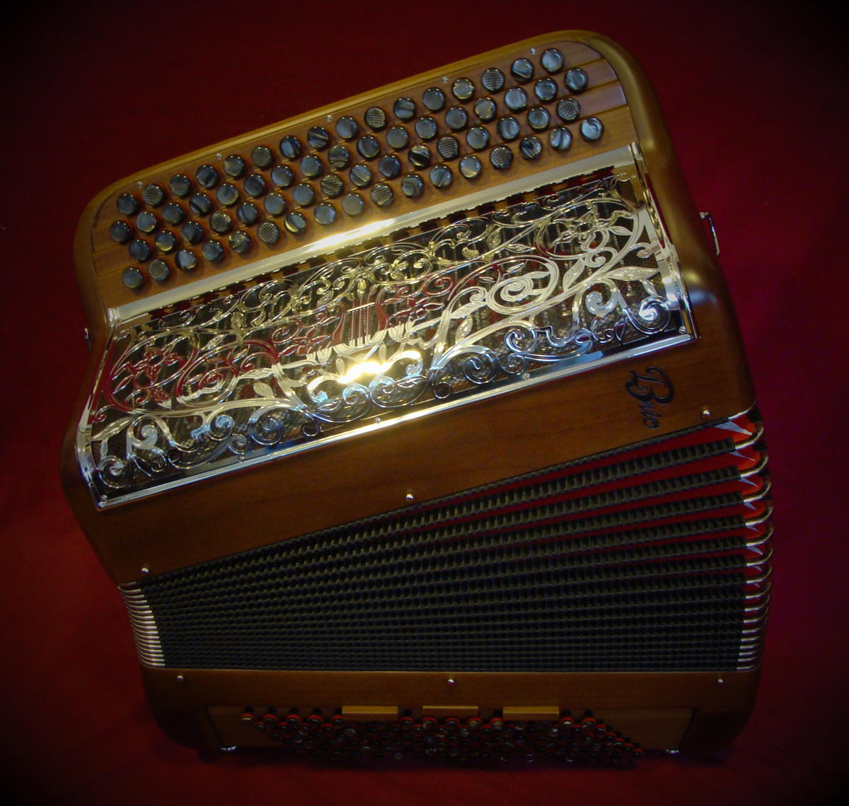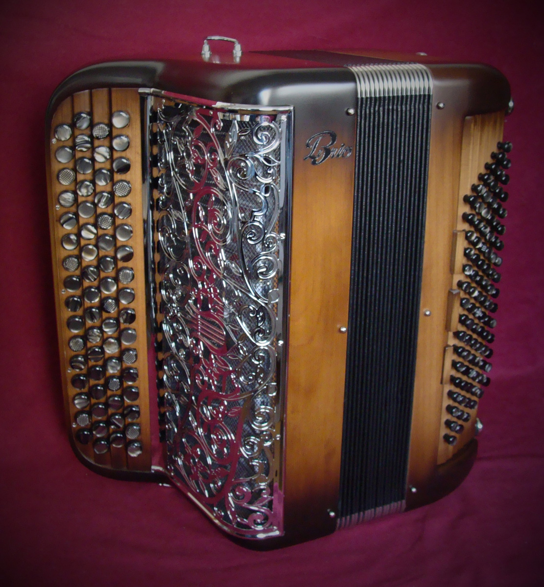 Mécanique 3/3 (3 rangées de basses et 3 rangées d'accords) ou 2/4 (2 rangées de basses et 4 rangées d'accords) au choix à la commande.