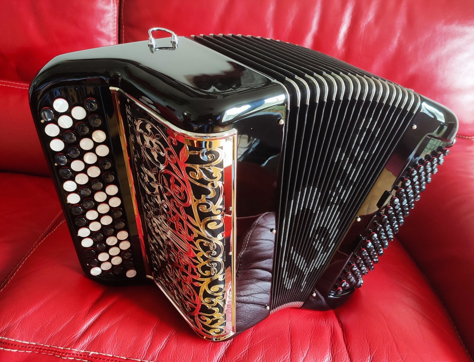 Idéal pour accompagner, jouer variétés, jazzy ou musette selon l'accord choisi et s'attaquer à un répertoire très varié. Avec 6 registres automatiques derrière le clavier offrant 5 sonorités différentes. La voix grave (Basson) en boite de résonance est particulièrement veloutée, douce et chaude. Les flûtes hors boite apportent une présence et une puissance qui s'harmonise à merveille avec le basson. L'accordage "américain" est installé sur ce modèle, un accordage différent est bien-sûr possible (classic, swing, céleste, musette...).