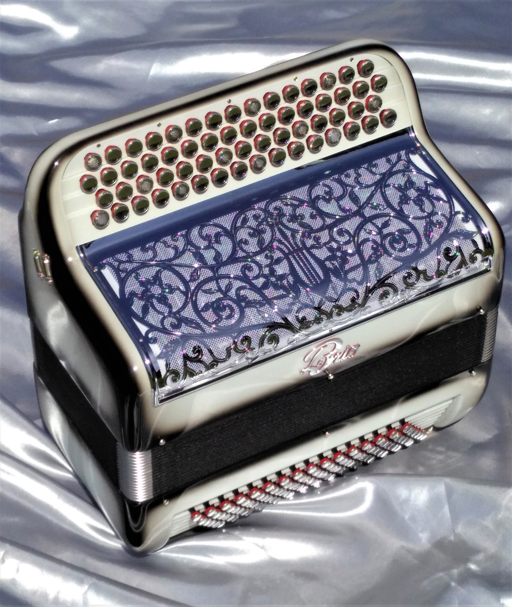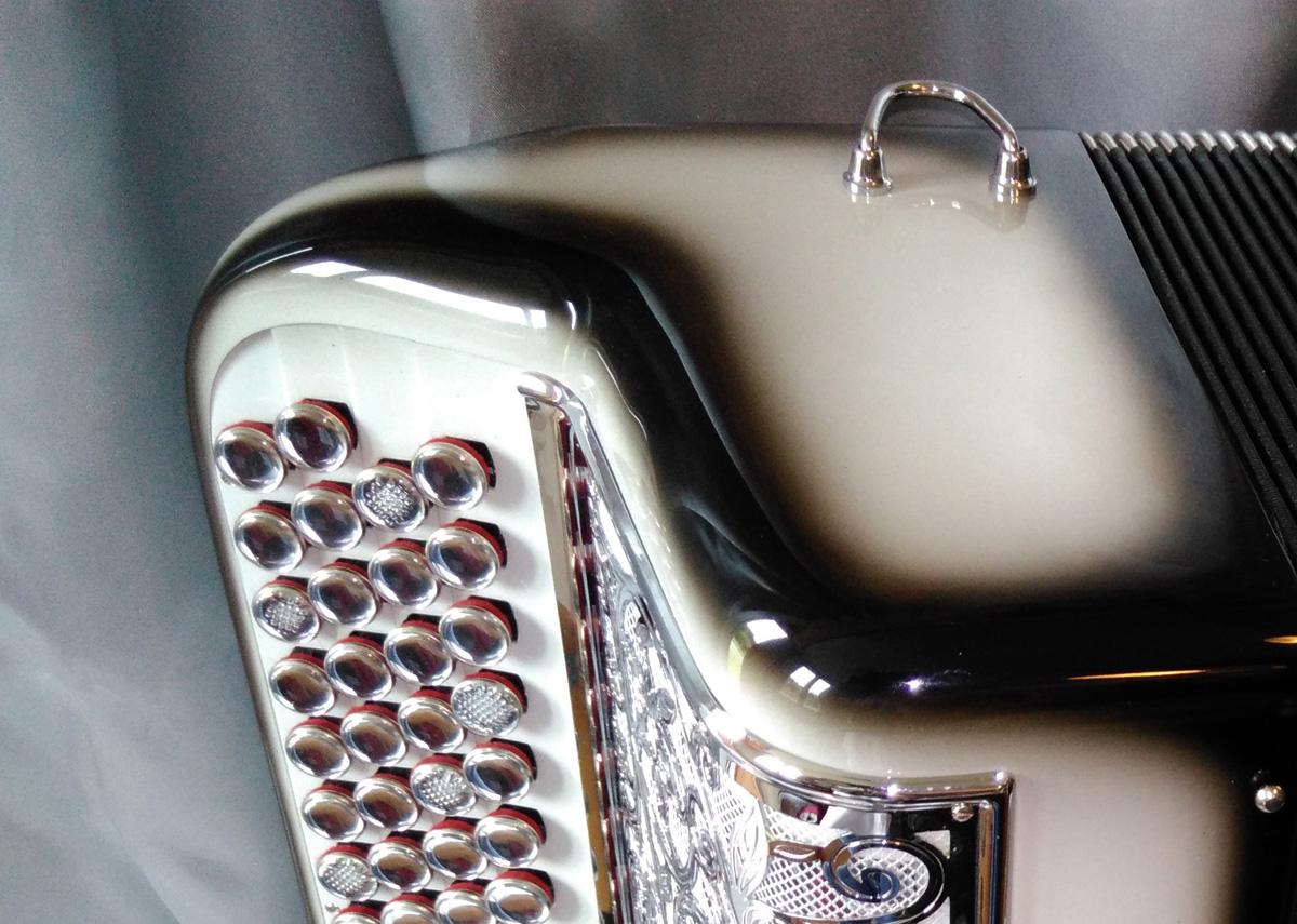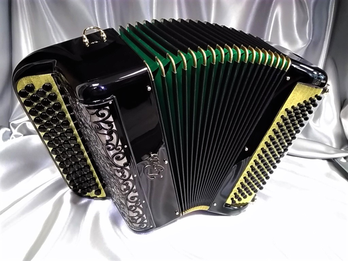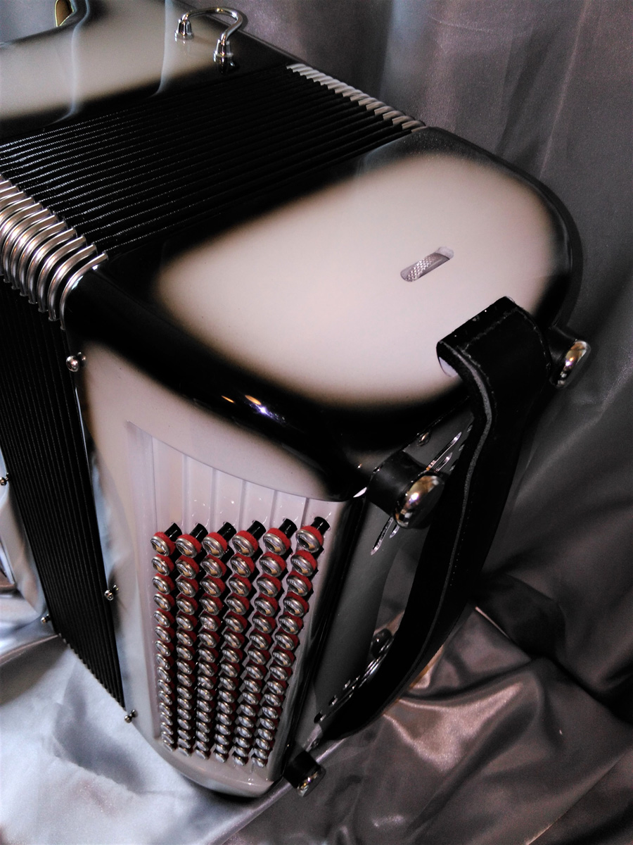 Idéal pour accompagner, jouer variétés, jazzy ou musette selon l'accord choisi et s'attaquer à un répertoire très varié. Avec 6 registres automatiques derrière le clavier offrant 5 sonorités différentes. La voix grave et puissante du Basson, donne un « bando » fort et percutant. L'accordage "américain" est installé sur ce modèle, un accordage différent est bien-sûr possible (classic, swing, céleste, musette...).
