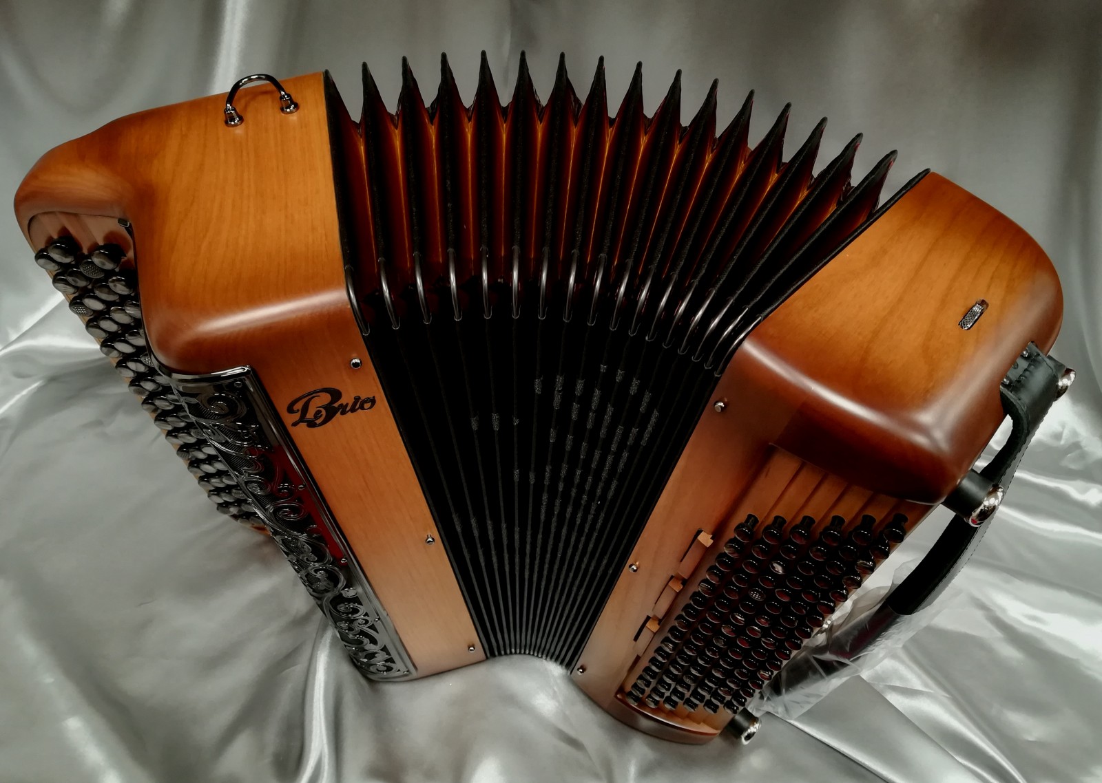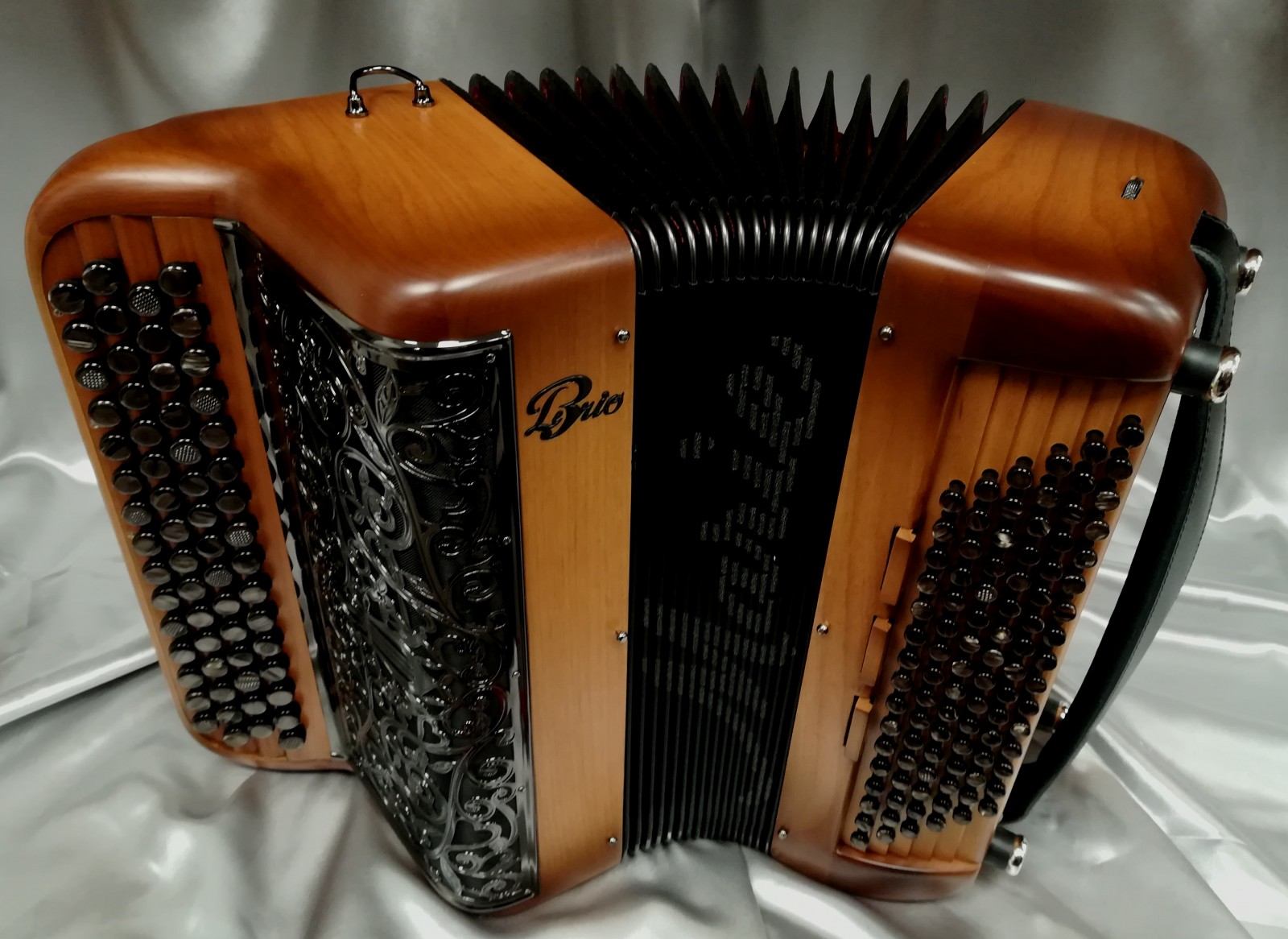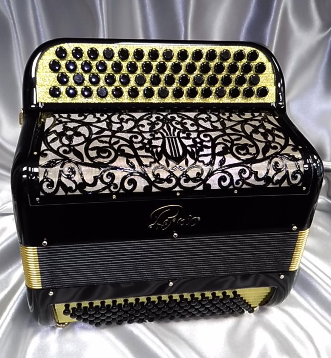 Idéal pour accompagner, jouer variétés, jazzy ou musette selon l'accord choisi et s'attaquer à un répertoire très varié. Avec 6 registres automatiques derrière le clavier offrant 5 sonorités différentes. La voix grave et puissante du Basson, donne un « bando » fort et percutant. L'accordage "américain" est installé sur ce modèle, un accordage différent est bien-sûr possible (classic, swing, céleste, musette...).