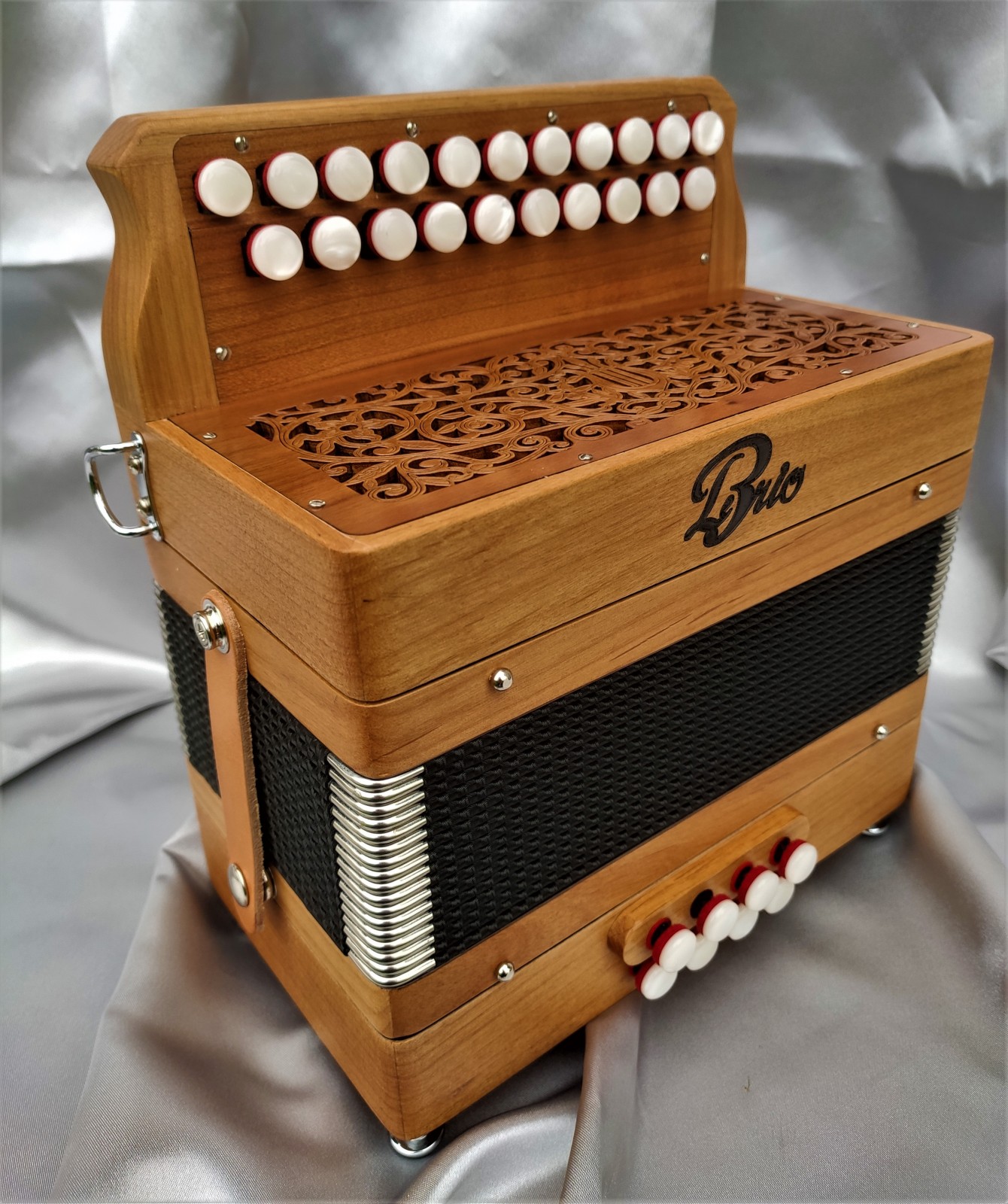 Ses dimensions de 22.5 cm de hauteur de jeun et 13 cm d'epaisseur pour 2.2 kg, font de lui le plus petit diatonique avec un clavier chant de 21 touches. Il vous apportera un confort de jeu avec un clavier digne des plus grands modèles diatonique professionnel.