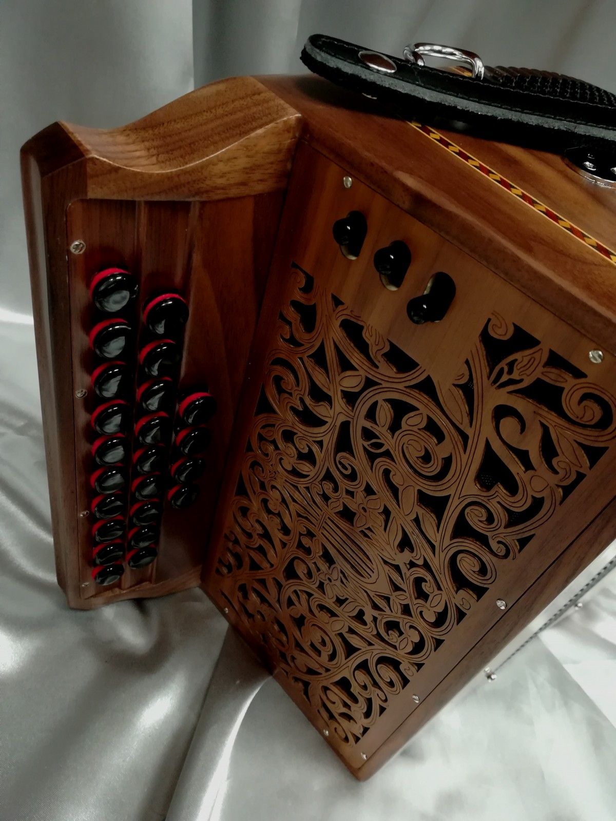 Ce modèle propose un choix de clavier pour 23 notes réelles ainsi qu'un registre main gauche permettant la suppression des tierces. 3 voix au chant et 3 registres situés sur la grille permettant 5 sonorités différentes (et non une tirette pour 2 sonorités).