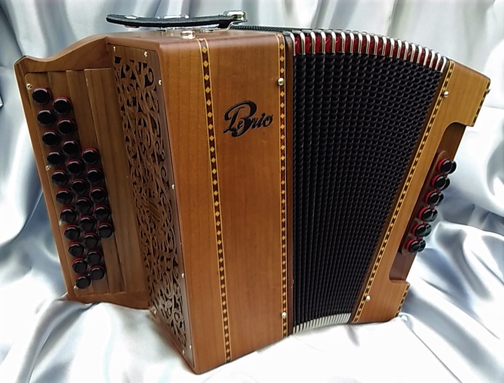 ♫ "Le Brio 2 rangs 1⁄2 (21 touches +5 alt) à 2 voix Bando (8-16), 12 basses", possède un registre de suppression de tierce et 2 registres au chant situé sur la grille permettant 3 sonorités : Flûte, Basson, et 2 voix bandonéon (2 voix à l'octave). La musique SD, TAM ou A mano peuvent être installées sur ce modèle haut de gamme.