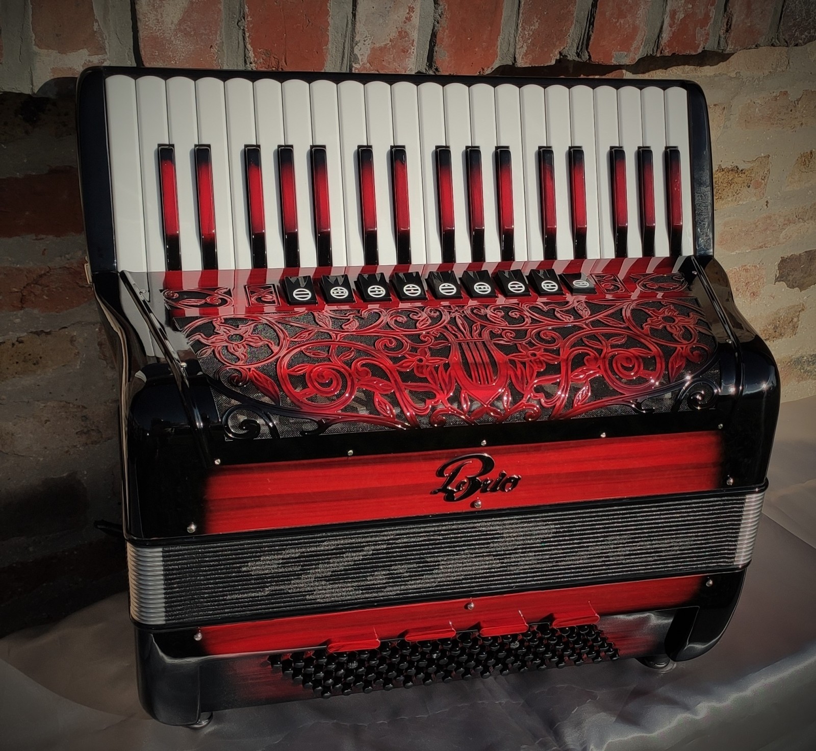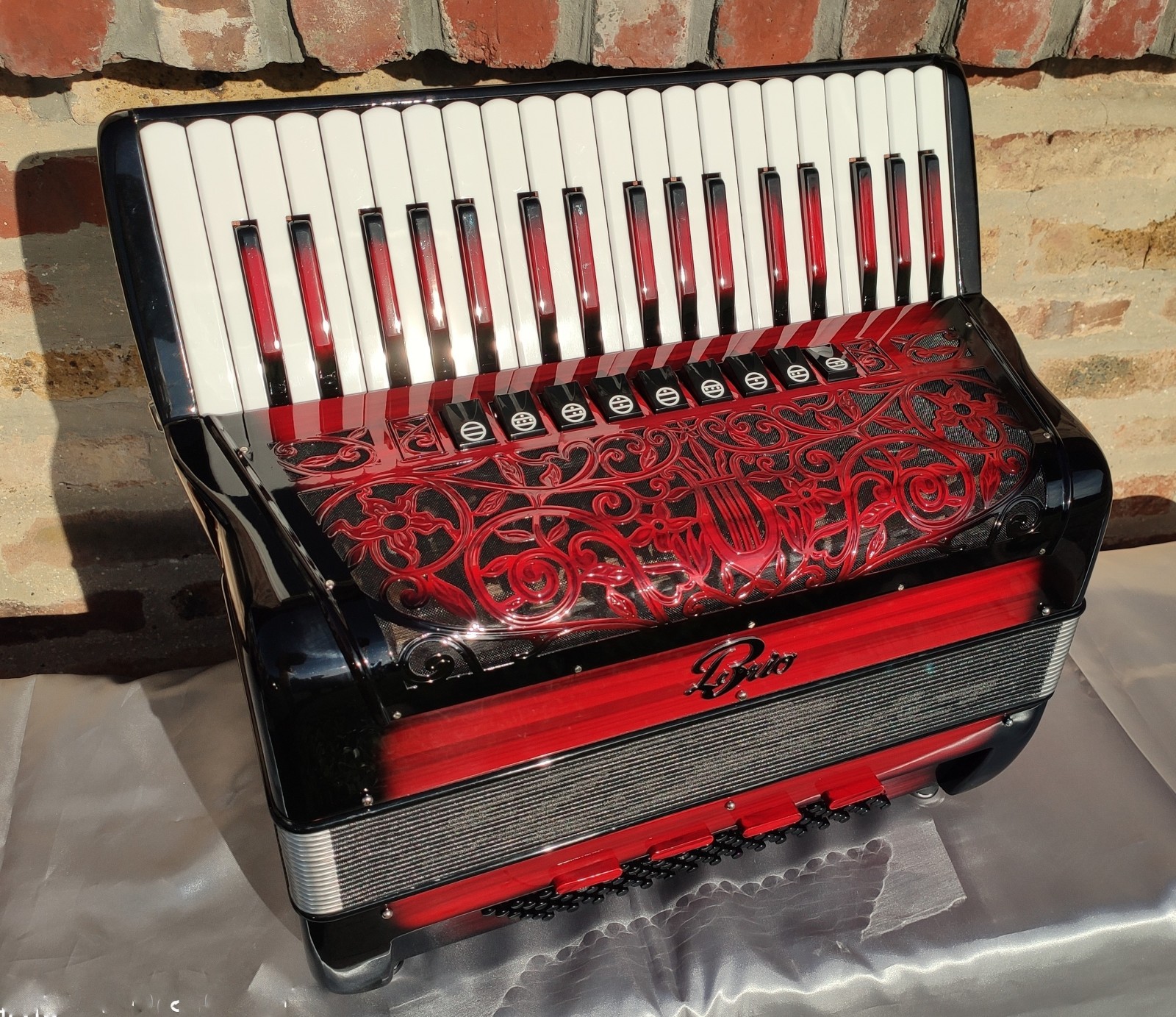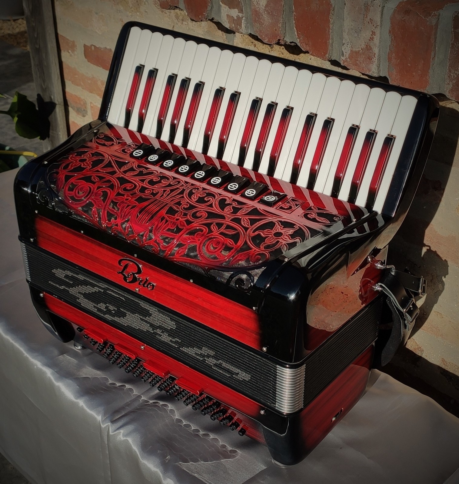 Idéal pour accompagner, jouer variétés, jazzy ou musette selon l'accord choisi et s'attaquer à un répertoire très varié. Avec 13 registres automatiques offrant sonorités différentes, un rappel et un registre de coupure. La voix grave et puissante du Basson, donne un « bando » fort et percutant. Retrouver également la sonorité "orgue ou quinzième", l'accordage 2 voix médium "américain" est installé sur ce modèle, un accordage différent est bien-sûr possible (classic, swing, céleste, musette...).