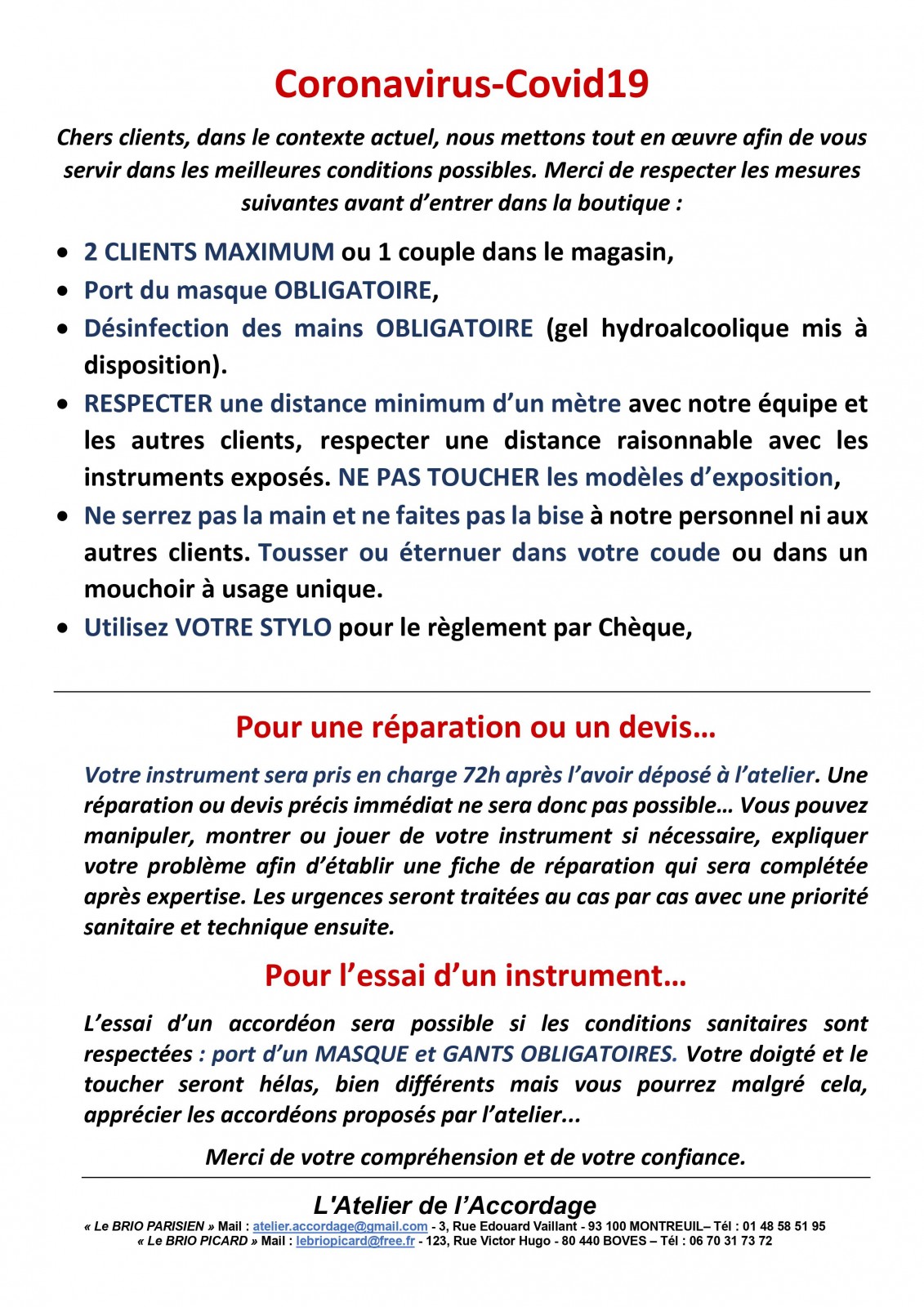 L'atelier de montreuil ou de Boves sont oucerts aux horaires habituels pour une réparation, une commande, une livraison ou une location... Merci de toujours respecter les rêgles sanitaires imposées. Il reste préférable de prendre RDV et donner vos informations par mail ou teléphone afin de limiter et de sécuriser votre visite a l'atelier...