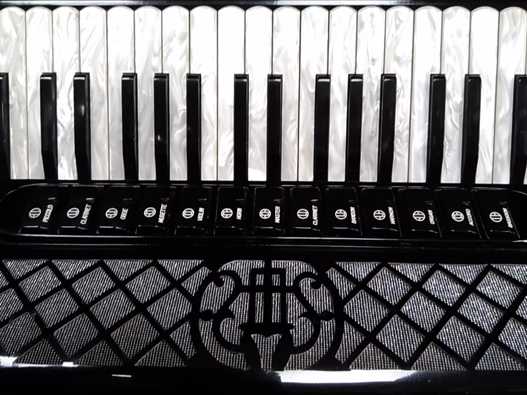Main droite : 4 voix, 41 touches, Double boite de résonance, 13 registres avec flûte et basson en boite.