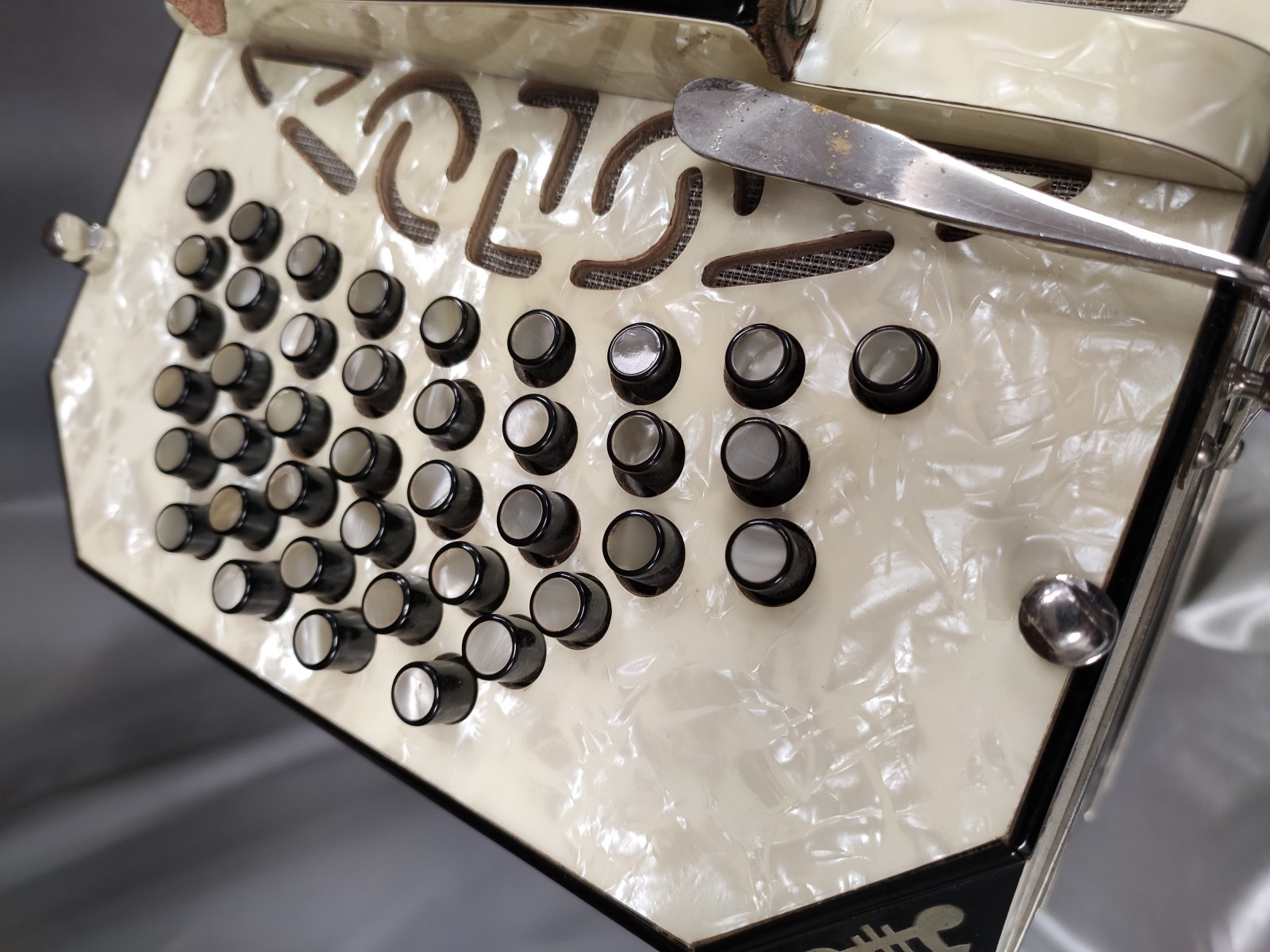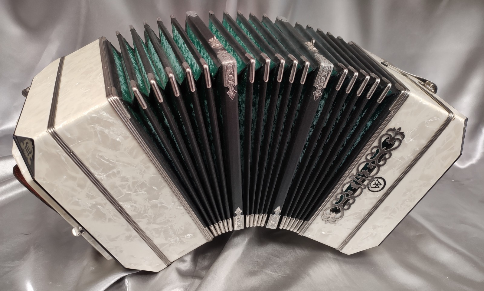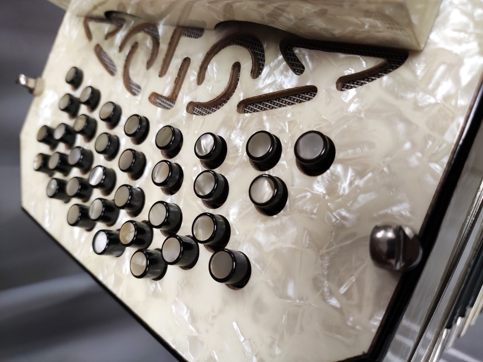 Main gauche : 5 rangs pour 33 boutons, étendue : fa# - do#