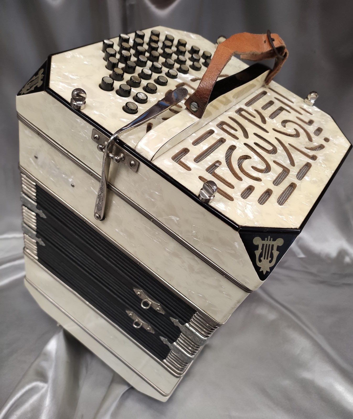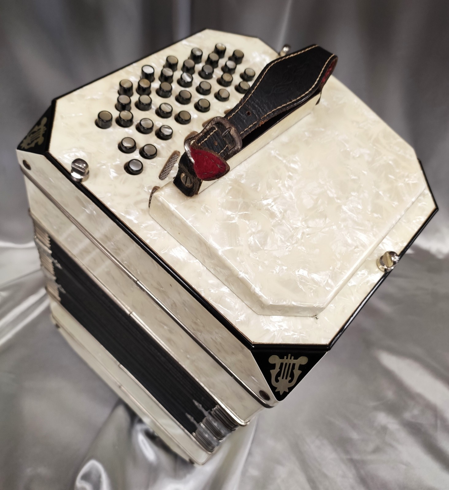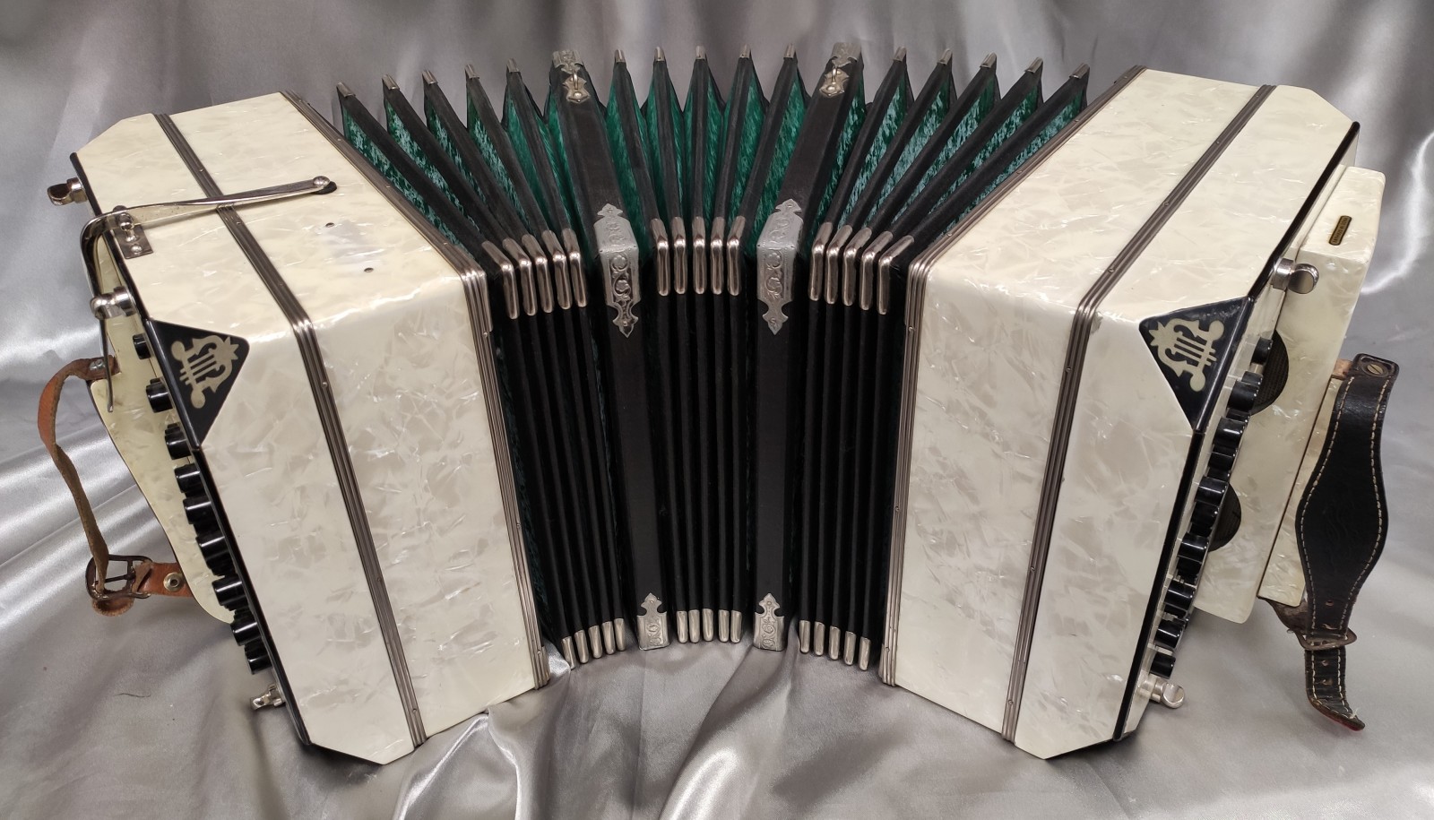 Main gauche : 5 rangs pour 33 boutons, étendue : fa# - do#