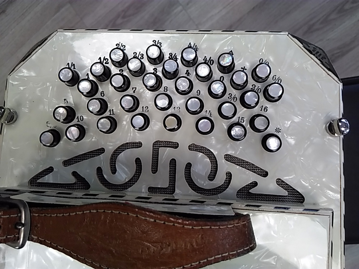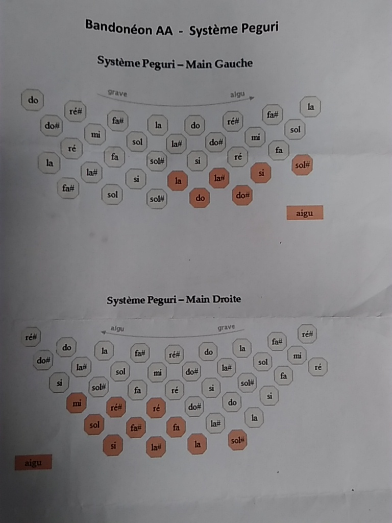 Main gauche : 5 rangs pour 33 boutons, étendue : fa# - do#