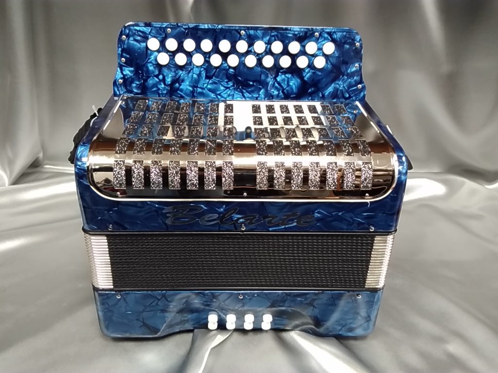 Main droite : Tonalité B/C, 3 Voix, 2 rangs pour 21 touches.
