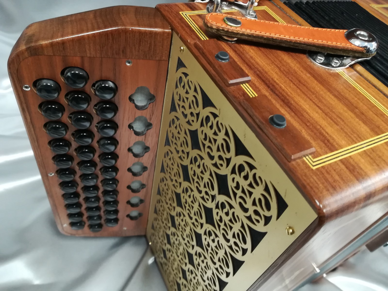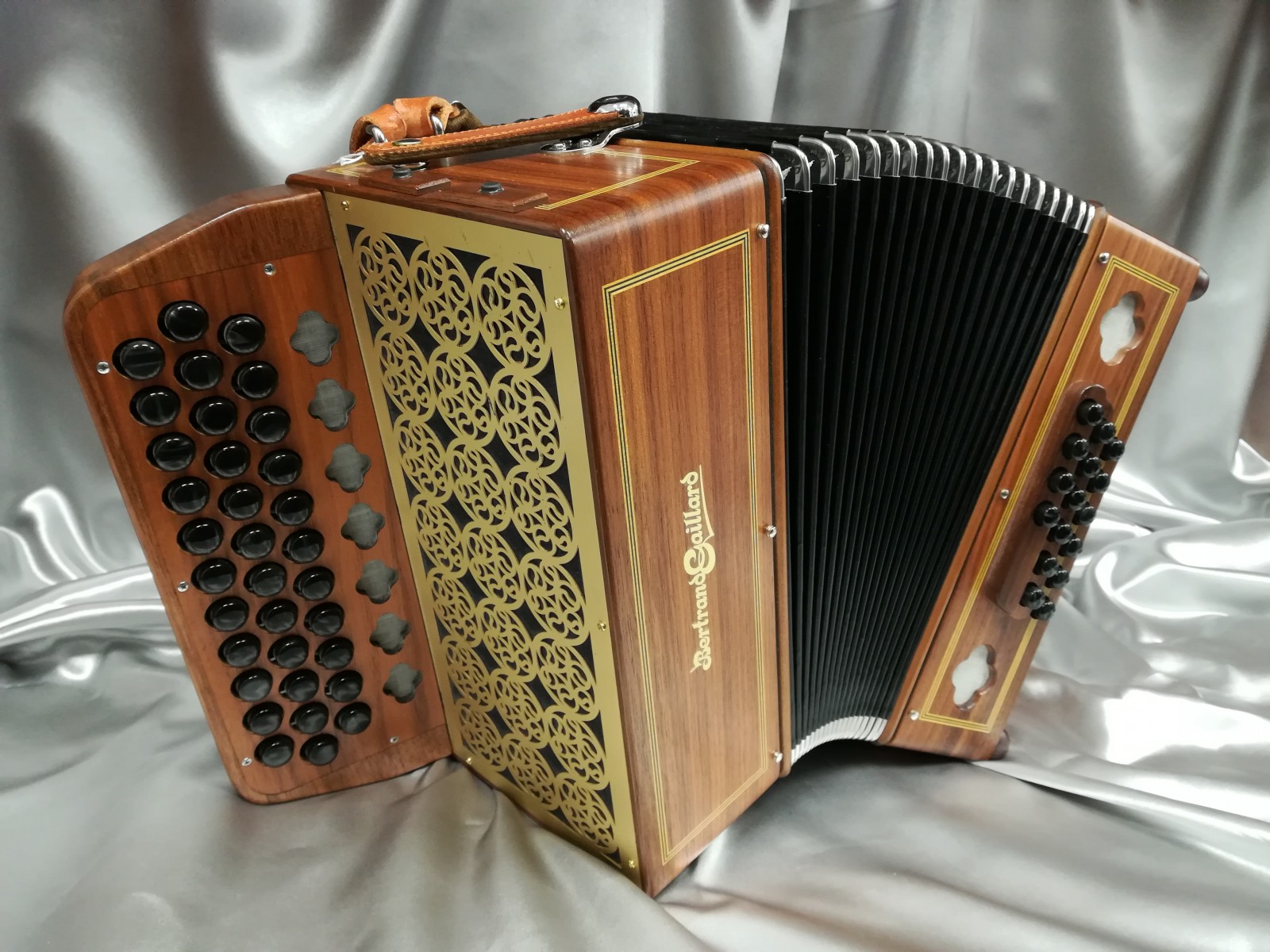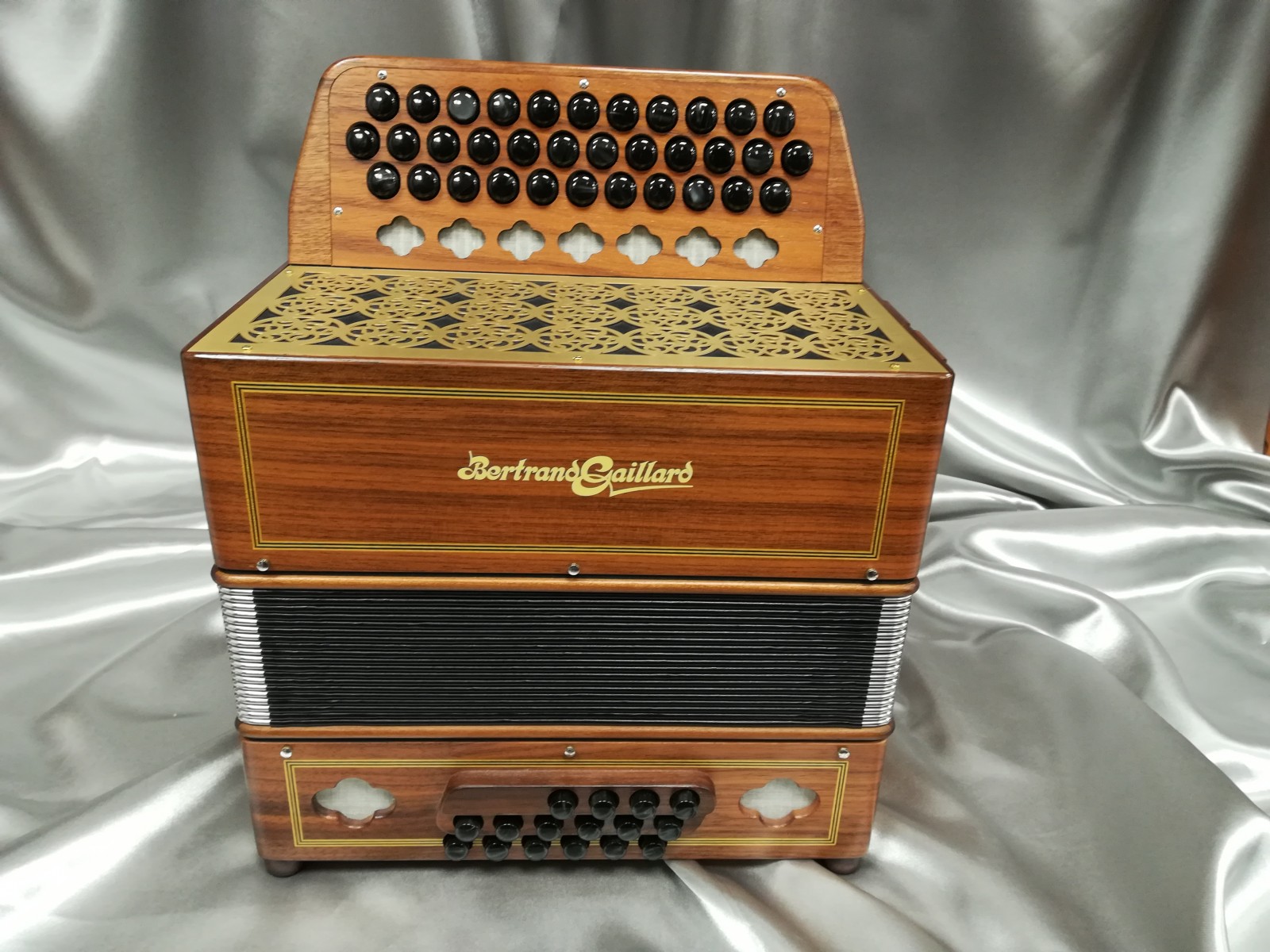 Modèle Bertrand Gaillard "Saphir", 2 voix bandonéon en C/F et 16 basses pour ce modèle en noyer massif. A saisir !