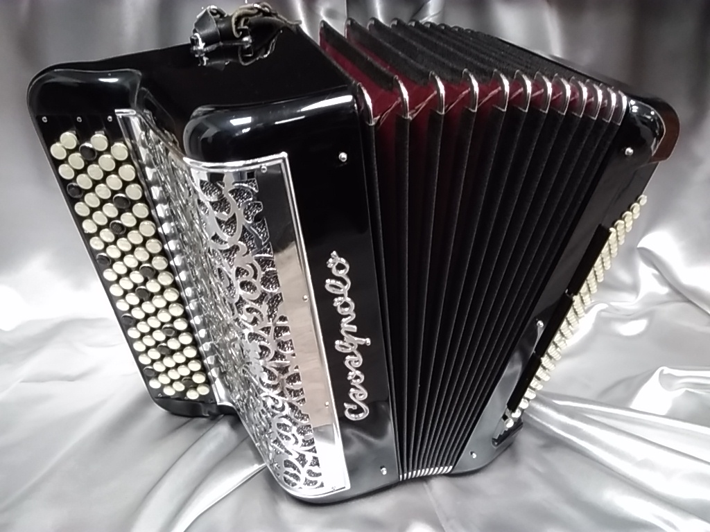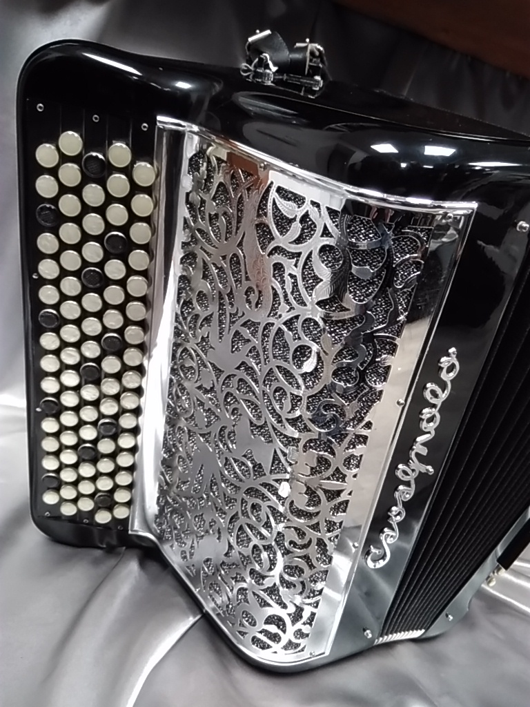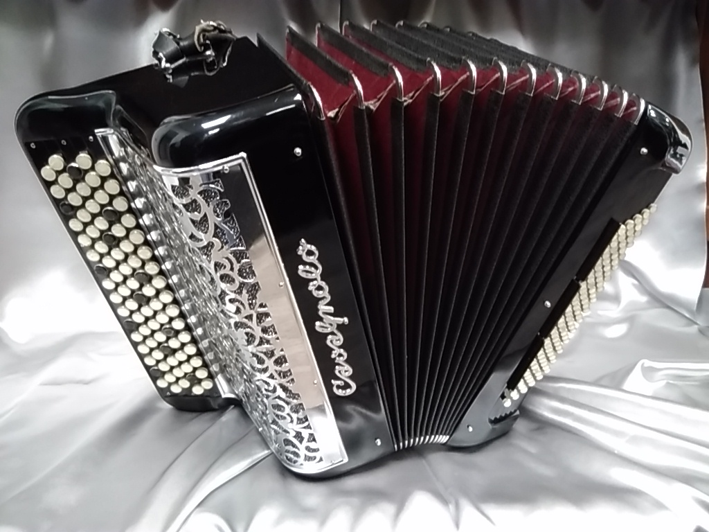 Modèle compact 3 voix avec boîte de résonance. 5 rangées au chant, accordage 2 voix musette.