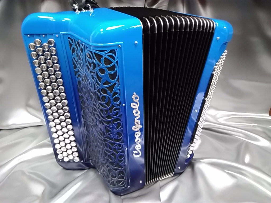 Main droite :3 voix musette, 4 rangs, 3 registres double