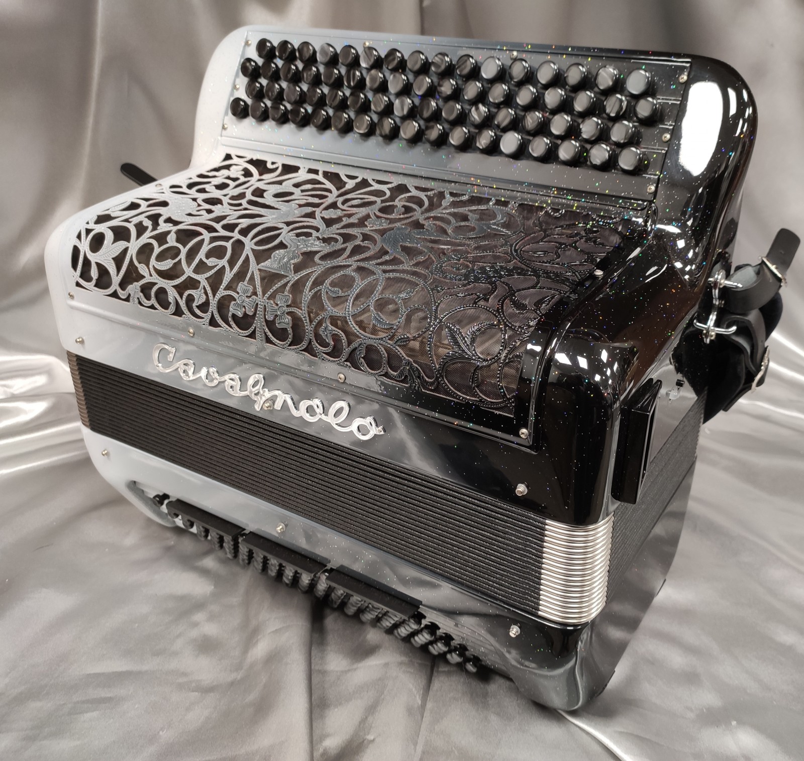 Coloris :Dégradé noir/ blanc pailleté pailleté, Boutons noirs
