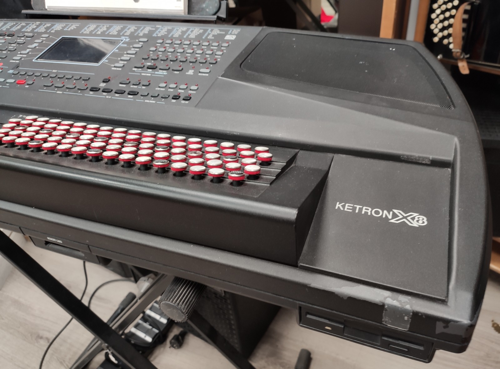 Clavier arrangeur X8 ketron d'occasion, état moyen avec des traces d'usures mais fonctionne parfaitement. Ce clavier Ketron arrangeur est idéal pour tester votre intérêt à ce genre de clavier. Il est disponible avec son pupitre et sa notice d'utilisation en français et le pied. A saisir !!
