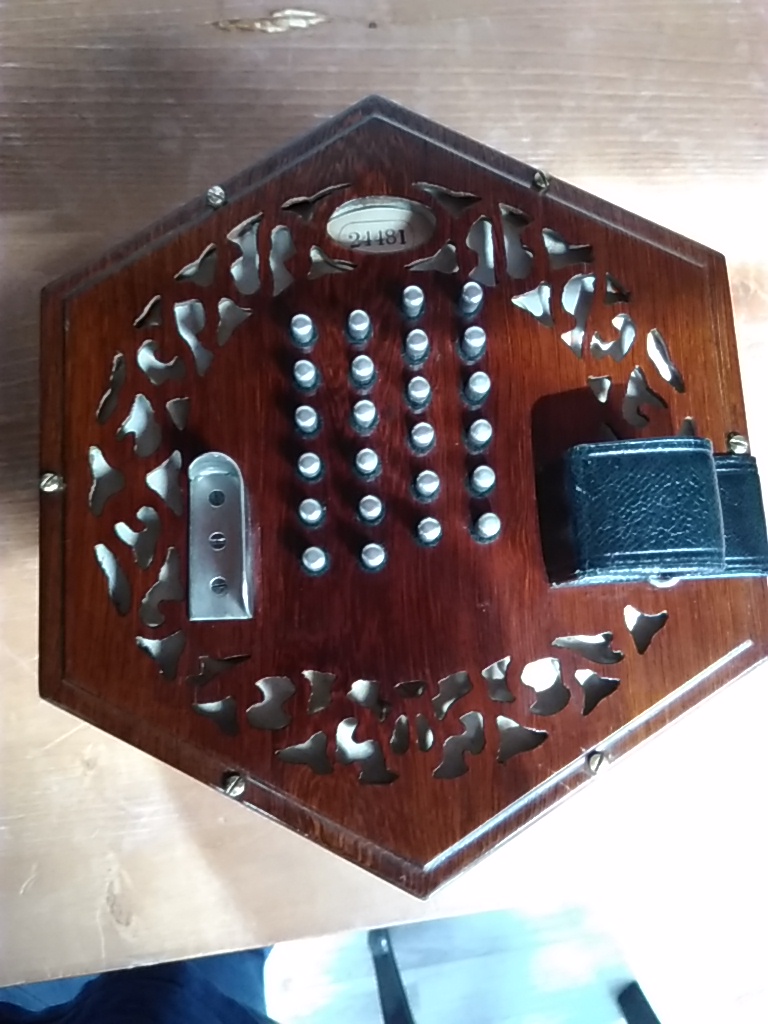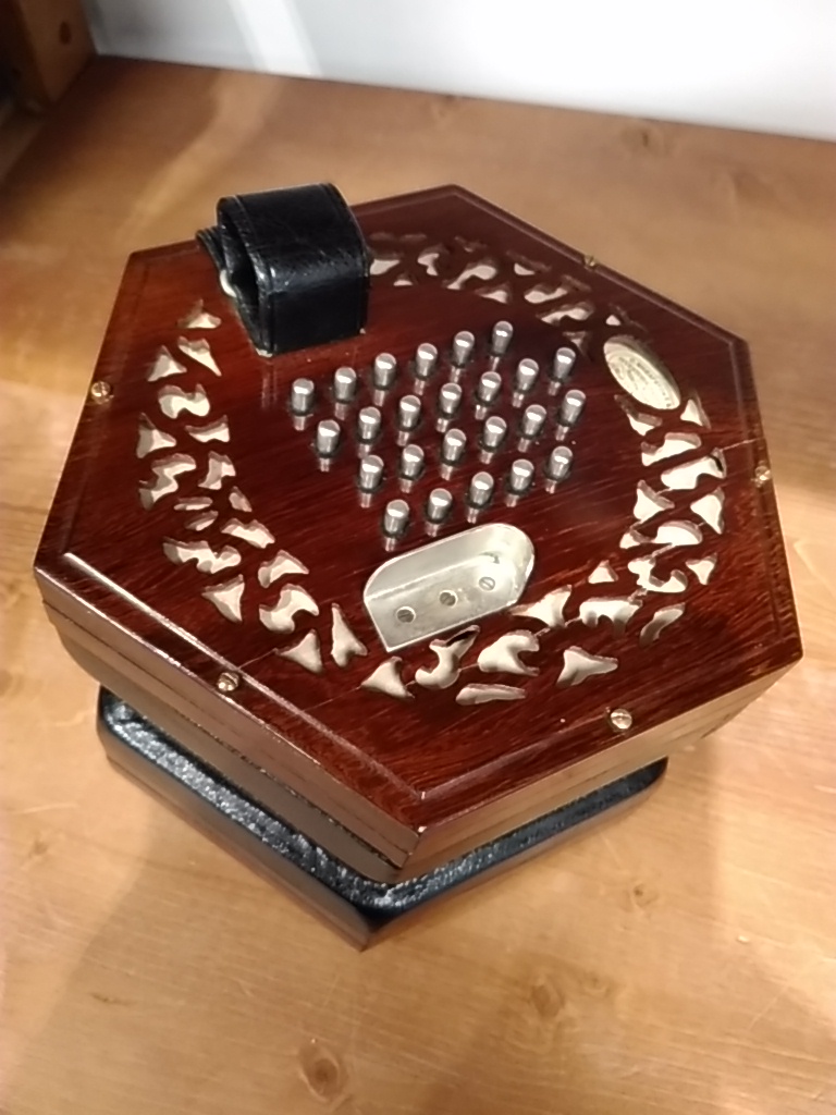 Très beau modèle de concertina fidéle à sa réputation. Le diapason d'origine est à 435 Hz.