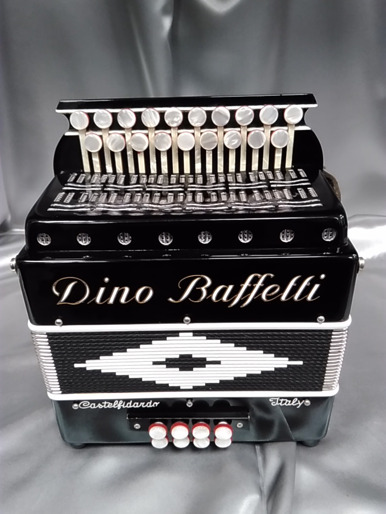 Main droite : Tonalité D/G, 2 Voix, 2 rangs 1/2 pour 19 touches.