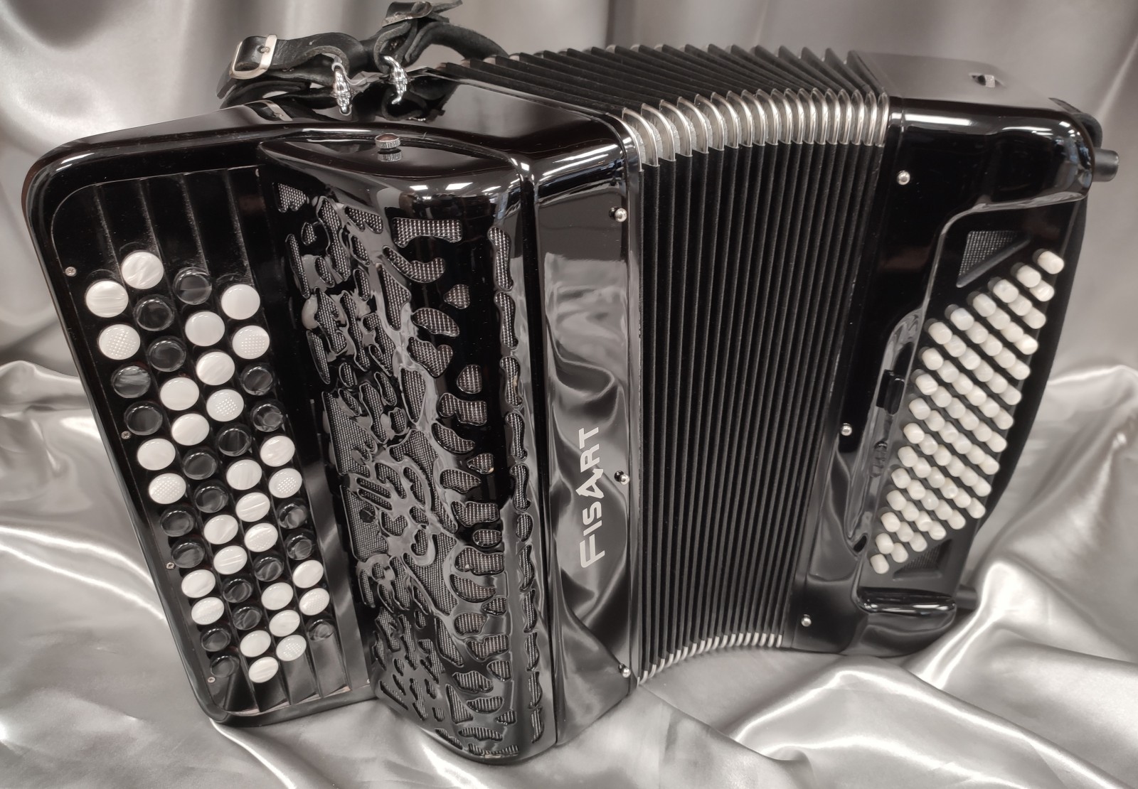 Modèle Fisart Découverte 1 voix au chant avec 66 basses standard/basses chromatique. Idéal pour l'étude des basses chromatiques avec une étandue et un format idéal à l'étude. Disponible à la vente ou la location.
