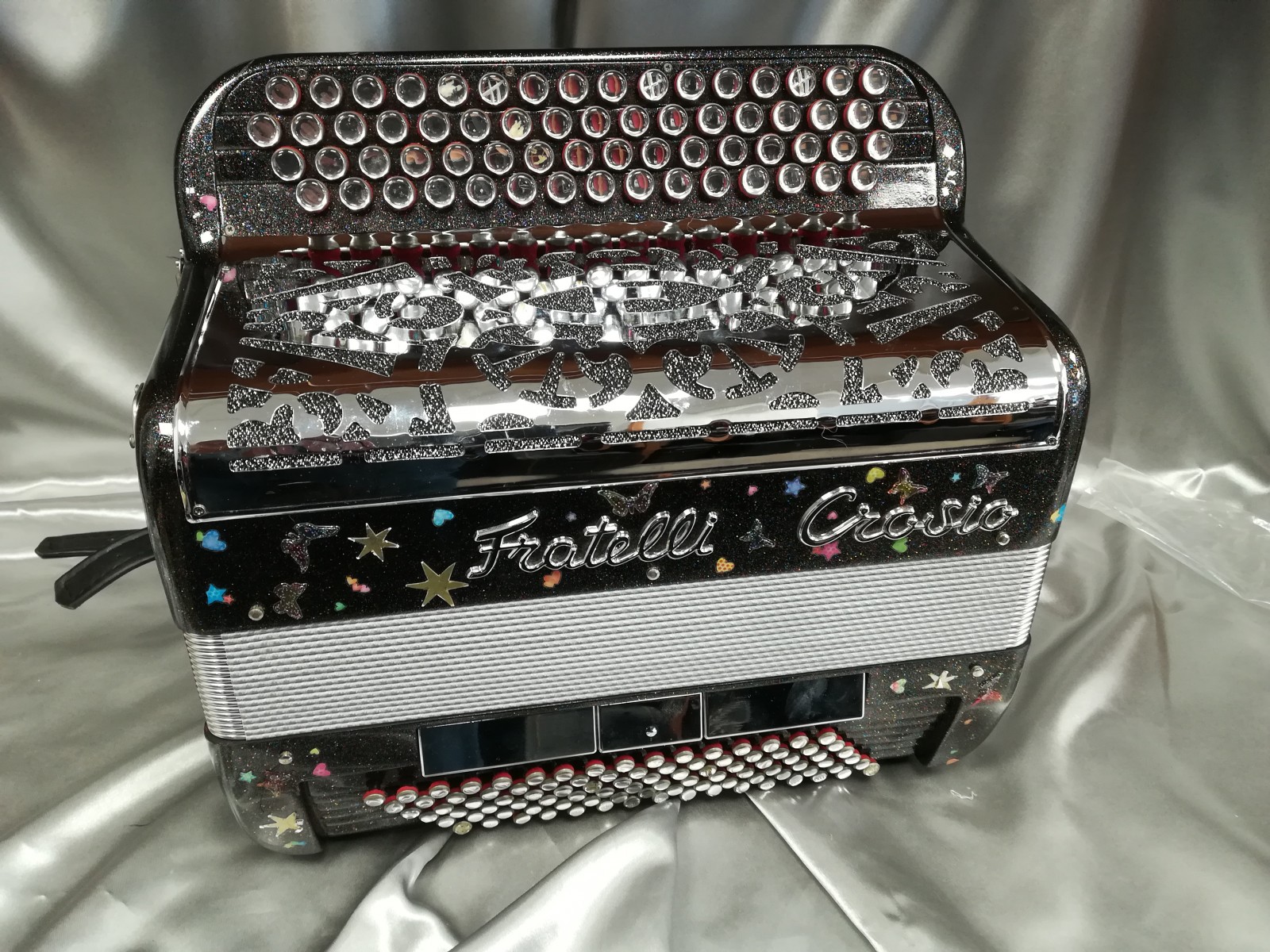 Modèle 3 voix Musette au chant, 96 basses avec boutons miroirs. A saisir !