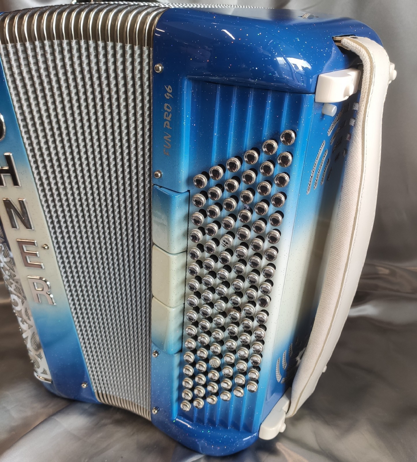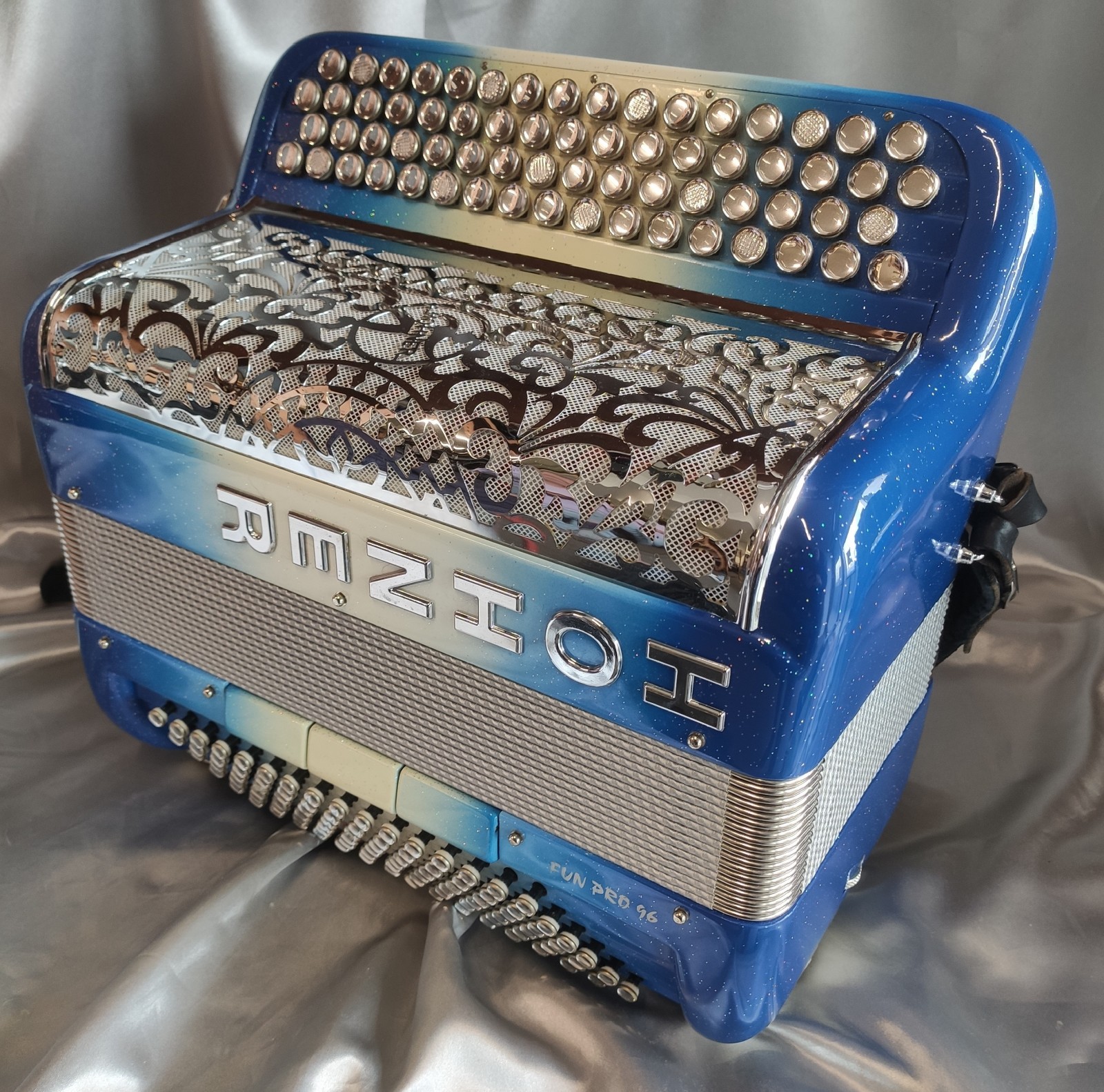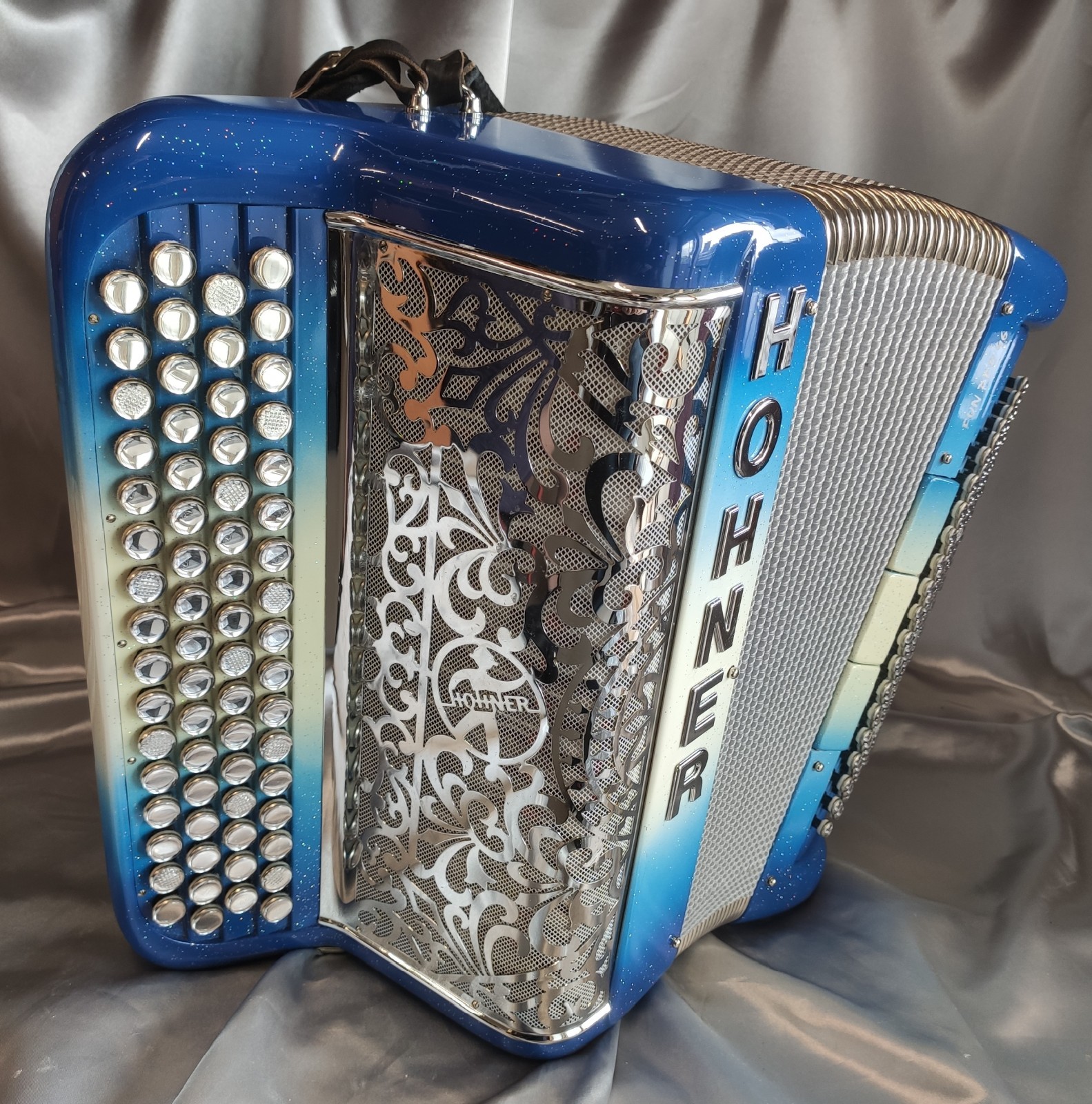 Coloris : Dégradé Bleu/blanc/Bleu pailleté - boutons miroirs