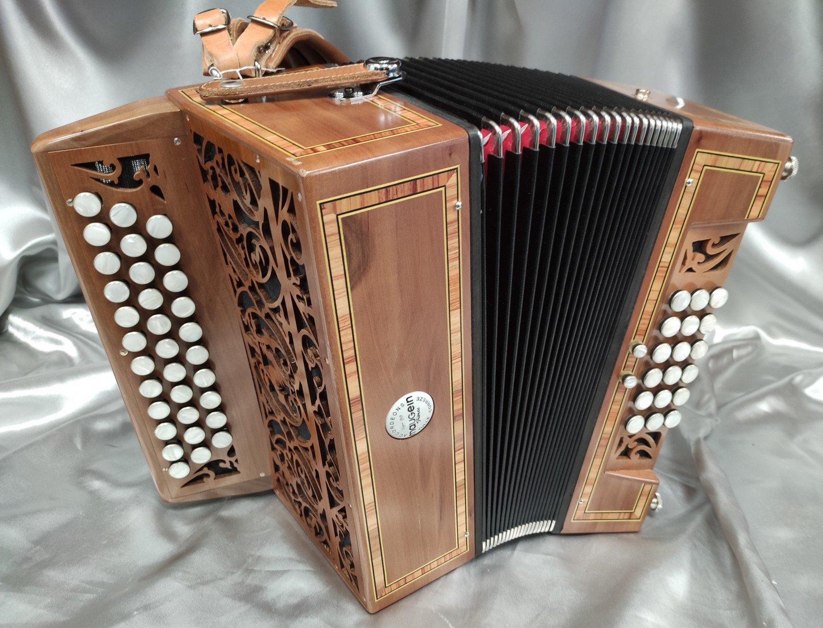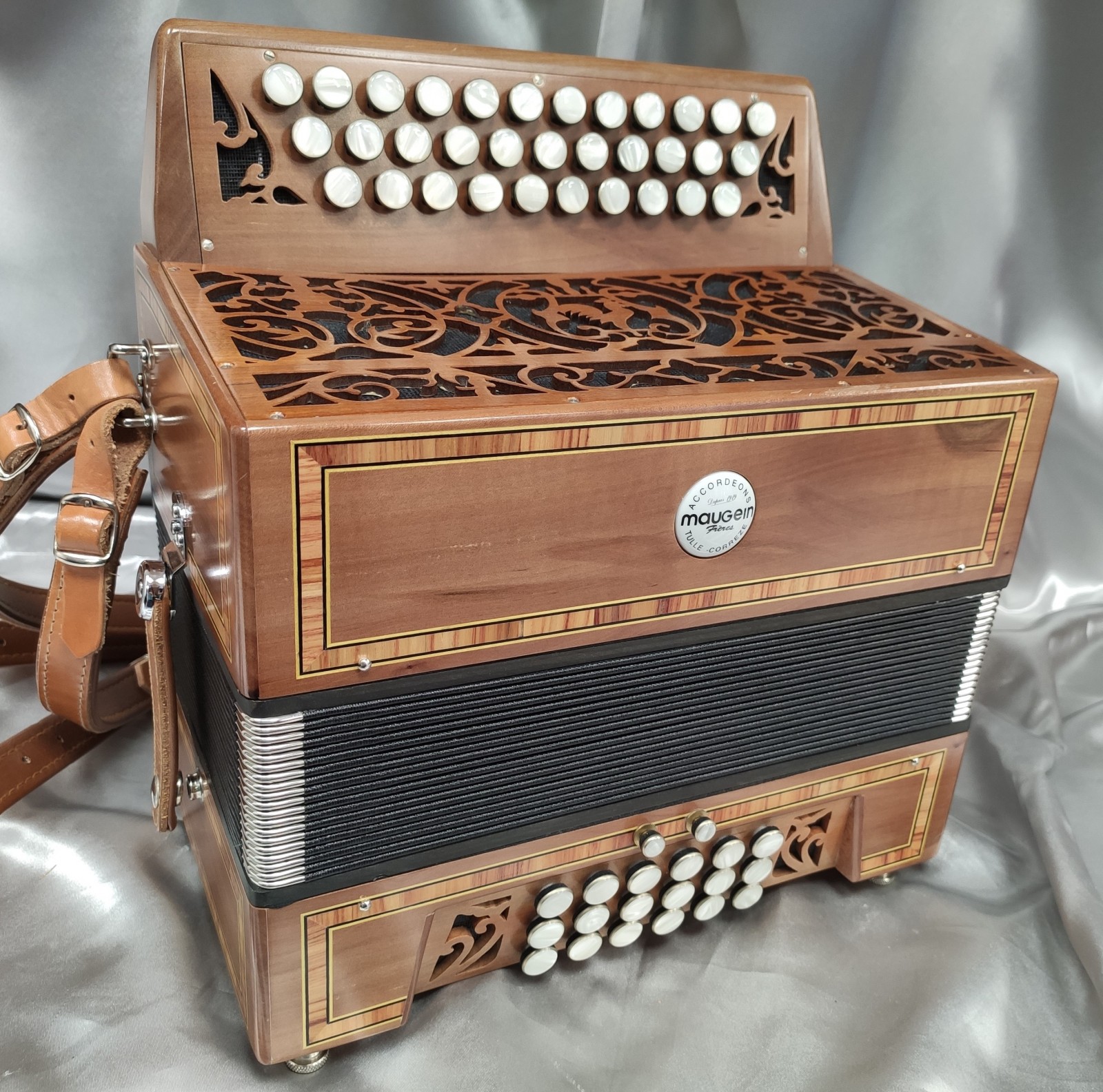 Modèle Maugein Luthinier 3/18, 2 voix bandonéon en G/C et 18 basses pour ce modèle. A saisir !
