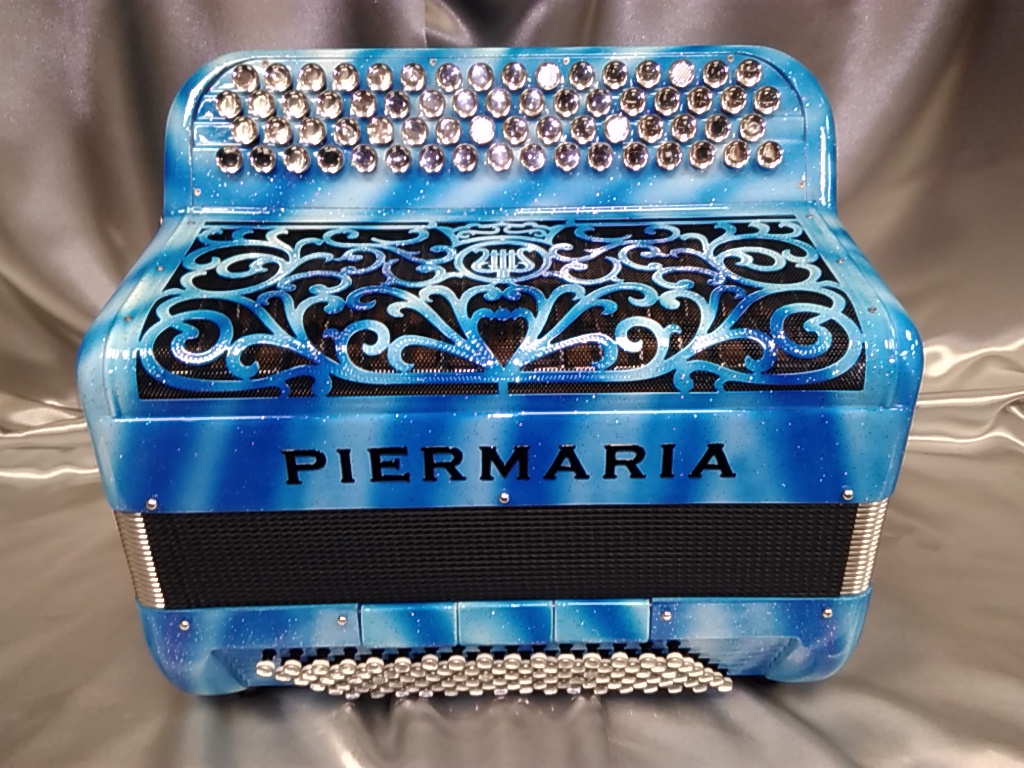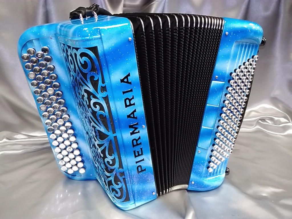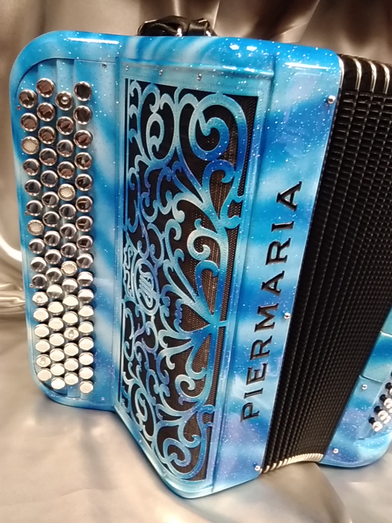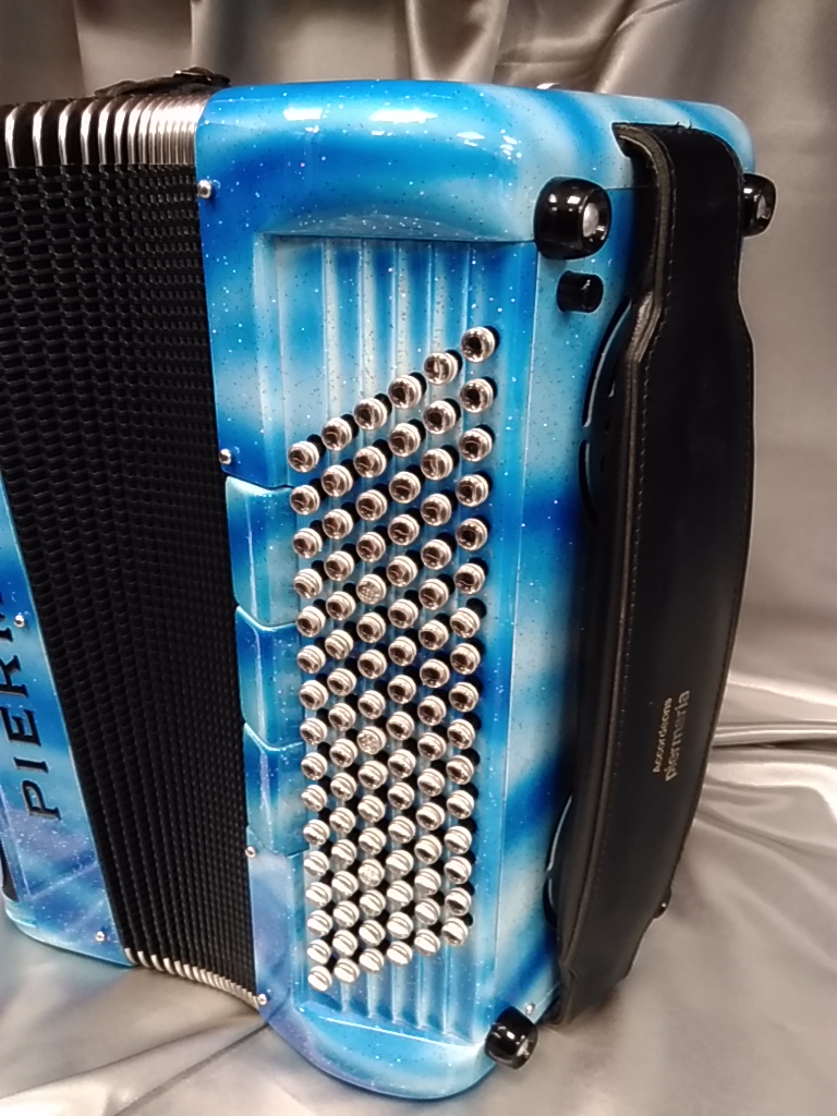 Modèle musette bleu dégradé avec boutons miroirs en parfait état.
