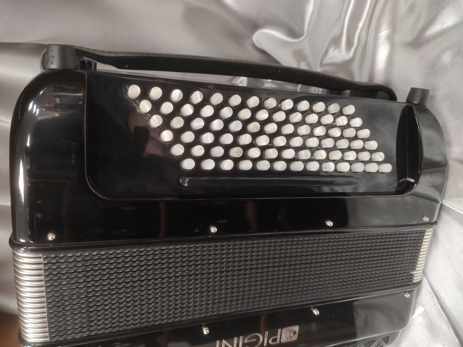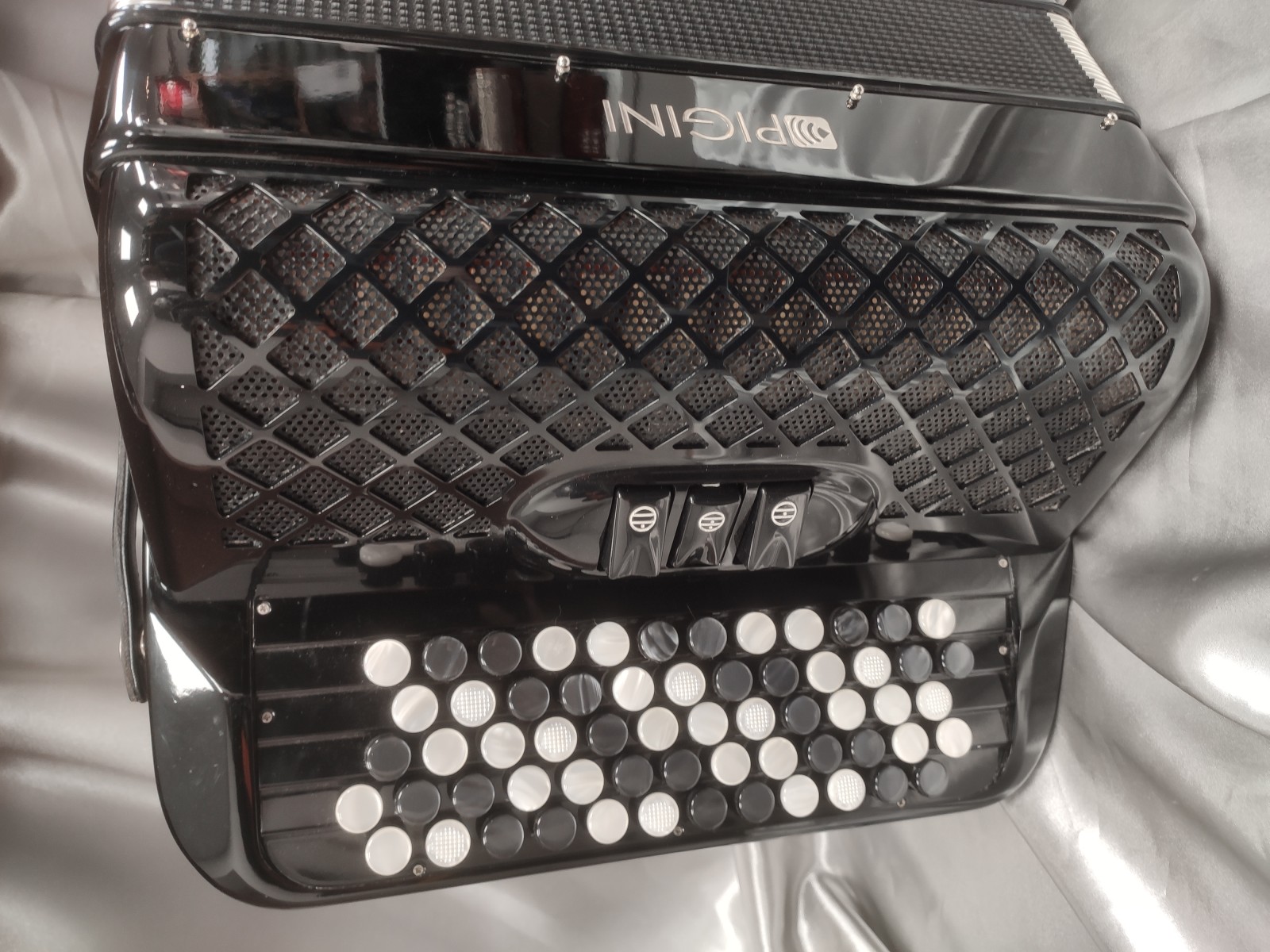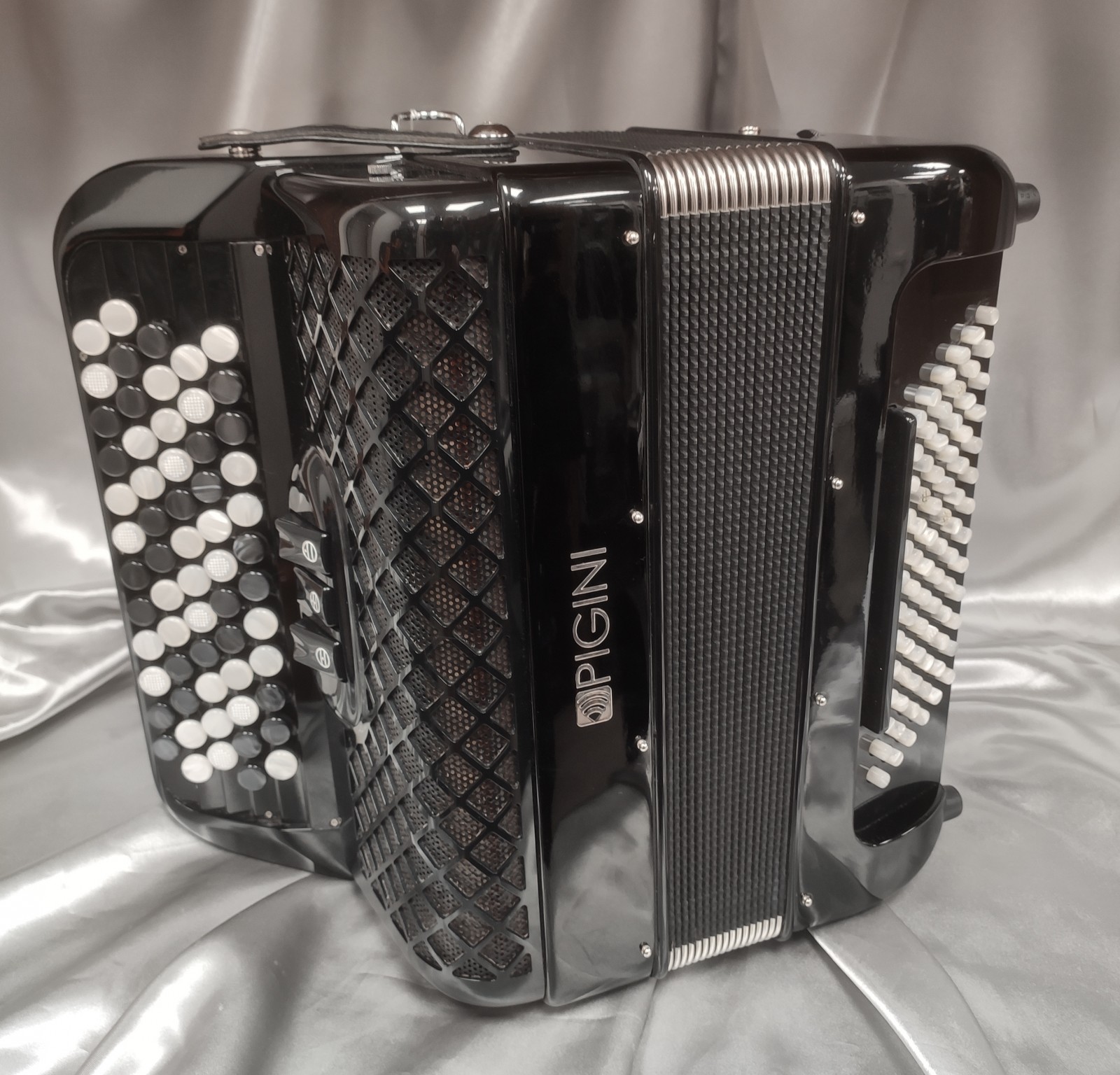 Modèle Pigini Concertino 1, à 2 voix au chant avec 78 basses standard/basses chromatique. Idéal pour l'étude des basses chromatiques avec une étandue et un format idéal à l'étude. Disponible à la vente ou la location.