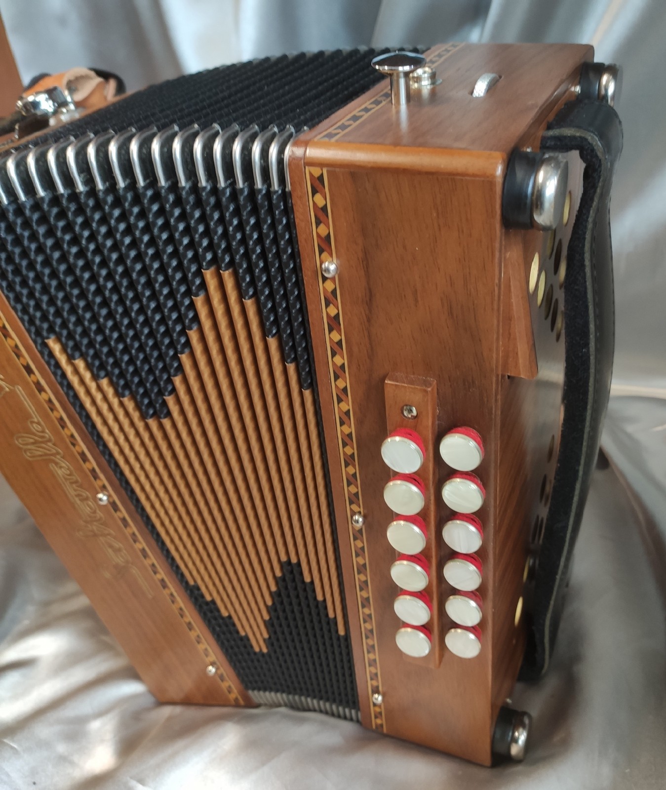 Main droite : Tonalité G/C, 2 Voix (8'-8'), 2 rangs 1/2 pour 24 touches.