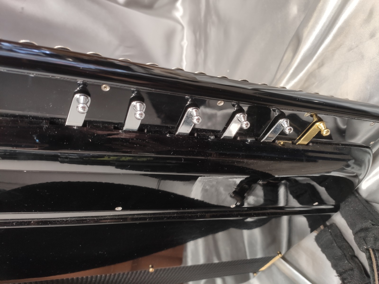 Main gauche : 120 basses - 5 voix, 7 registres