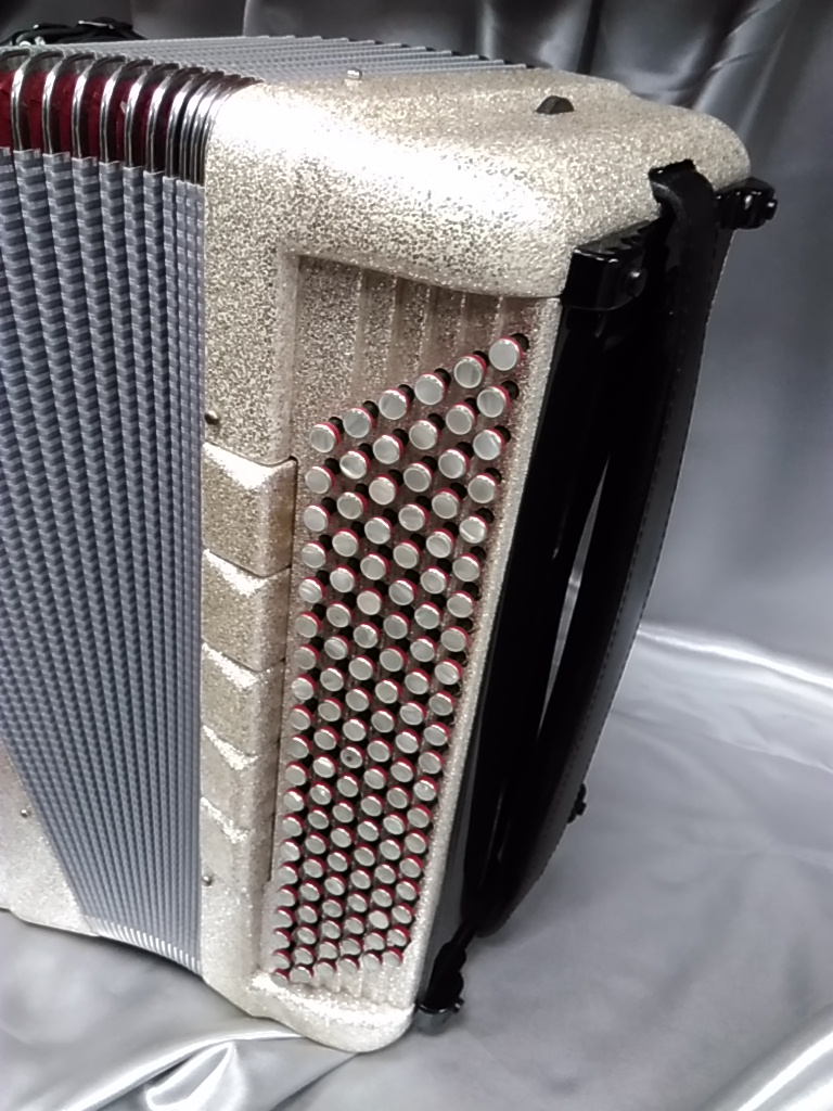 Main droite : 4 voix avec 3 voix musette et Basson, 4 rangs pour 52 notes, 9 registres.