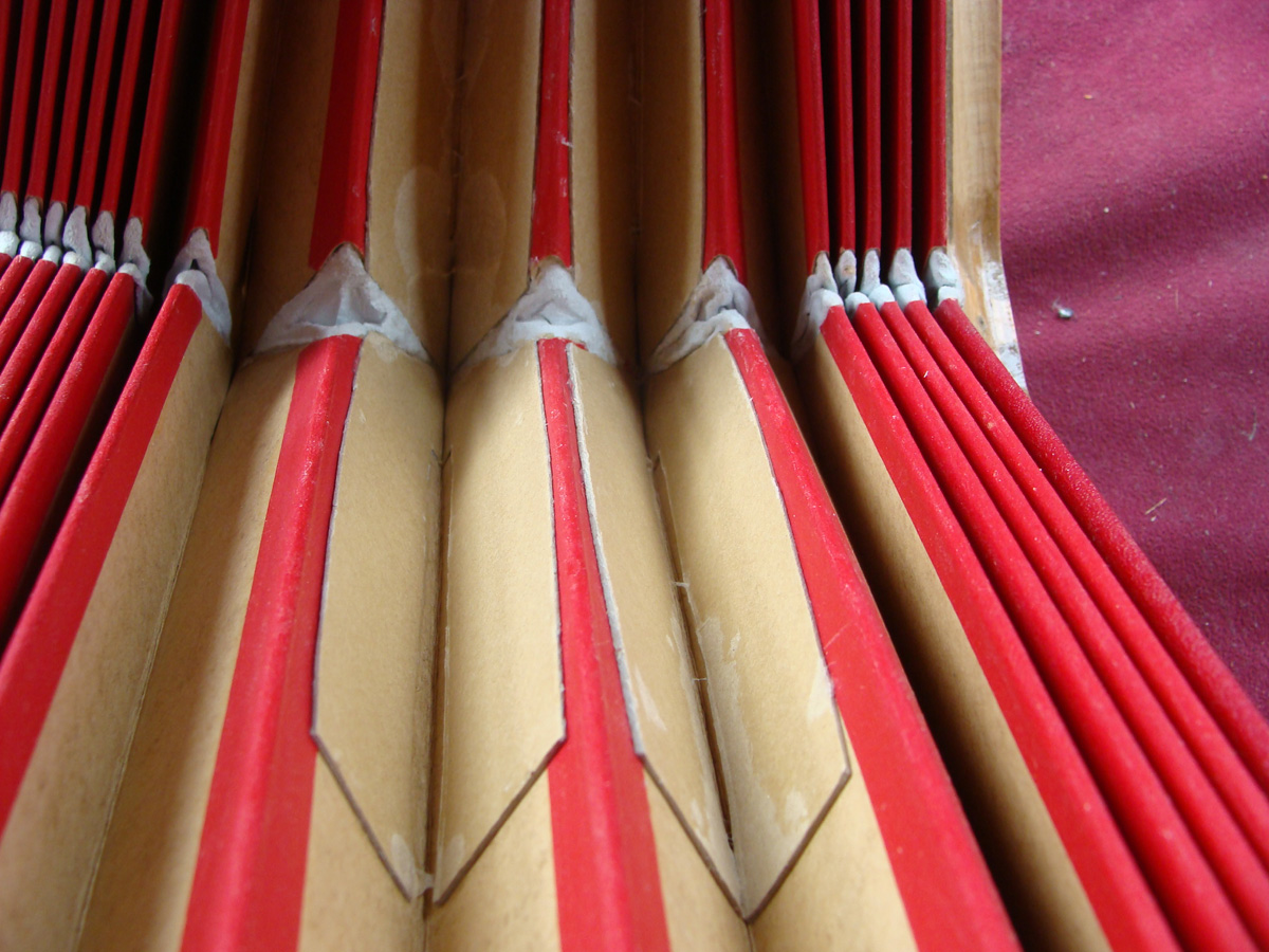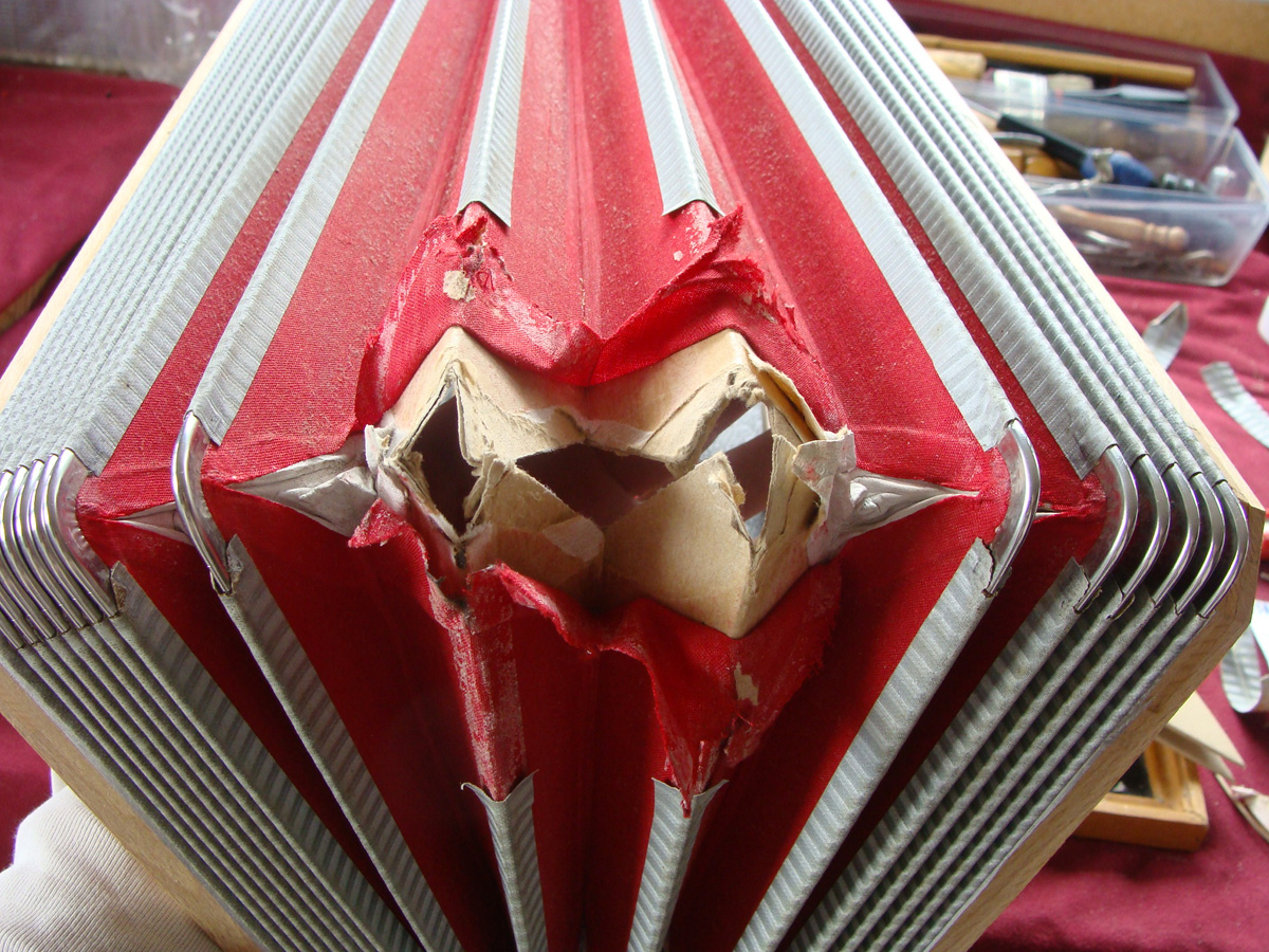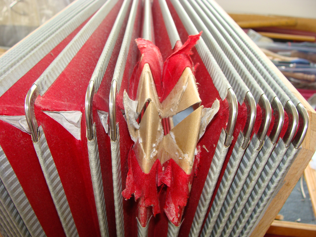 Les bandes de soufflet neuves préparées sont ensuite collées.