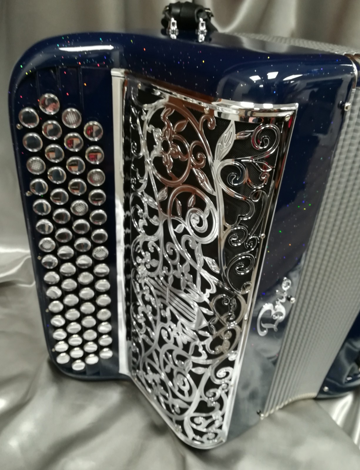 « Le Brio Bando » Ce modèle 2 voix sera équipé de registres permettant d'obtenir 3 sonorités : Bandonéon , Flûte et basson. Dans ce cas, les 2 voix installées seront la flûte et la voix grave.