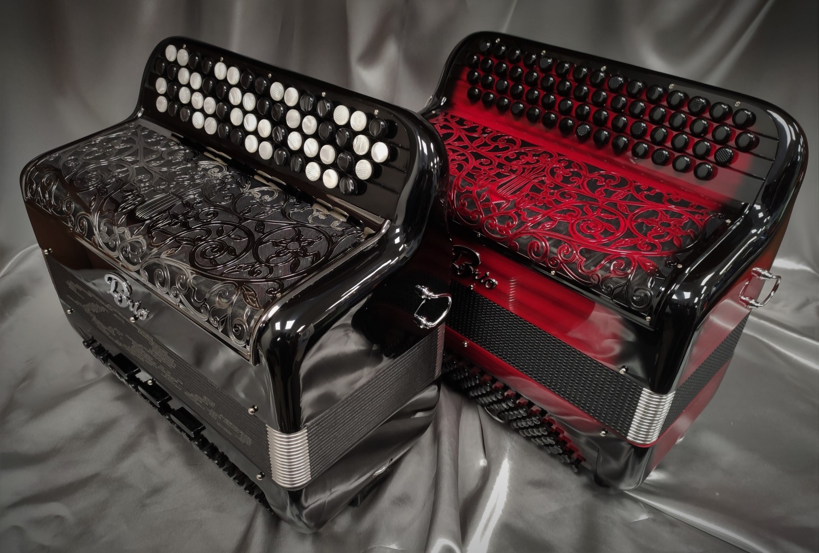 Les modèles 80 et 96 basses sont équipés d'un registre au chant pour 2 sonorités (Flûte et 2 voix médium). Cette configuration avec les 2 flûtes traditionnelles permet d'obtenir la vibration ou le type d'accordage (swing, américain, celeste, musette...), donc « le brio » de votre choix.