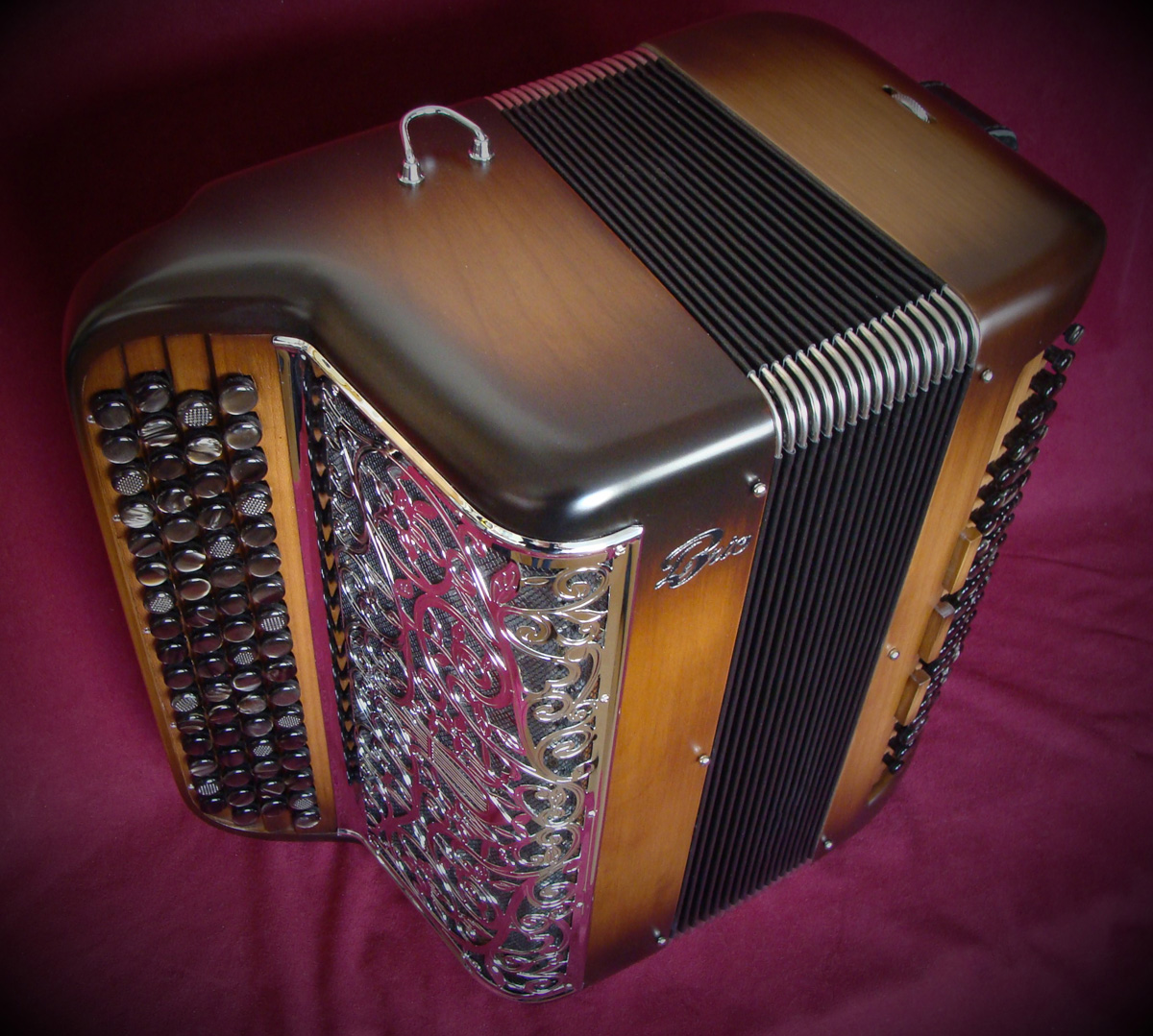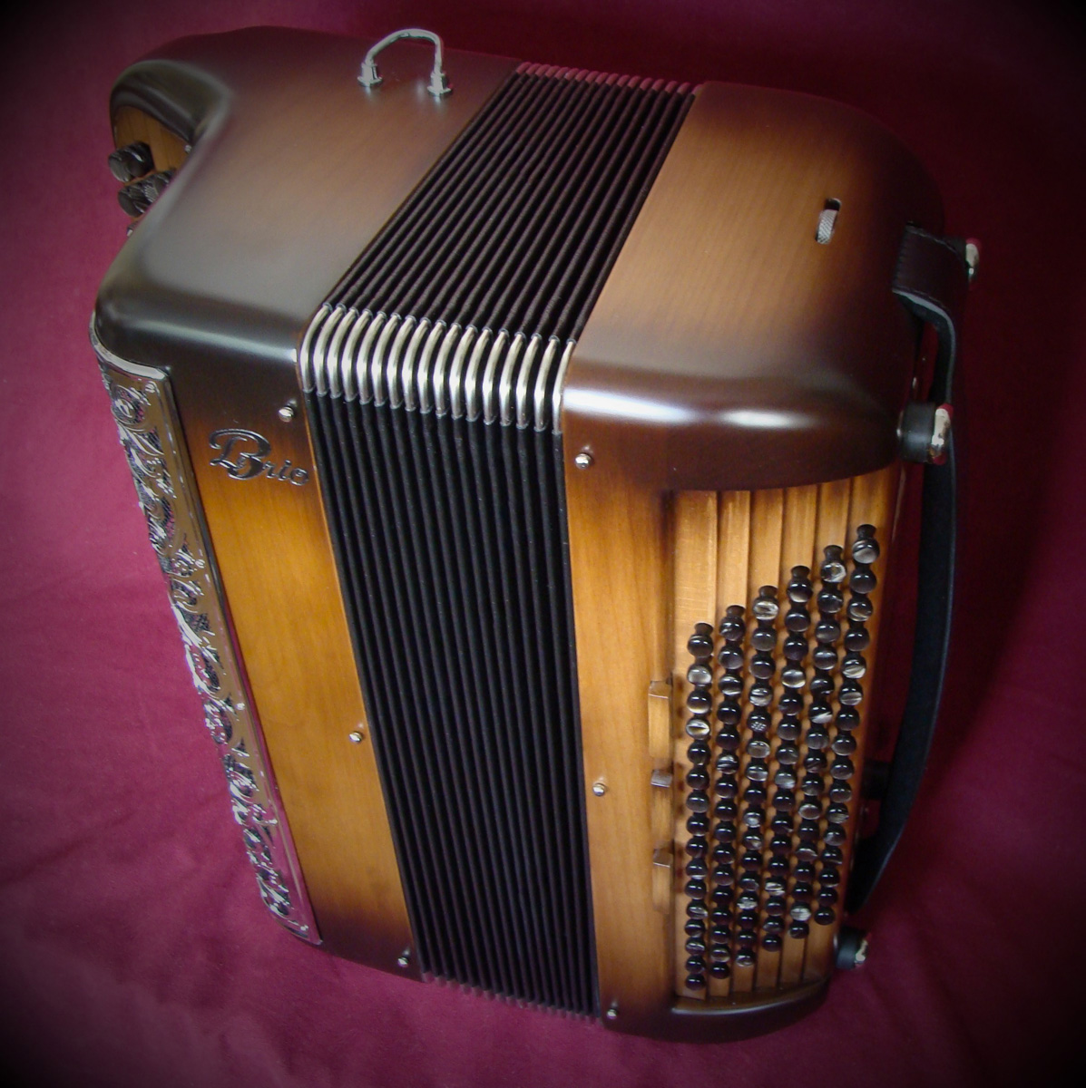 Mécanique 3/3 (3 rangées de basses et 3 rangées d'accords) ou 2/4 (2 rangées de basses et 4 rangées d'accords) au choix à la commande.