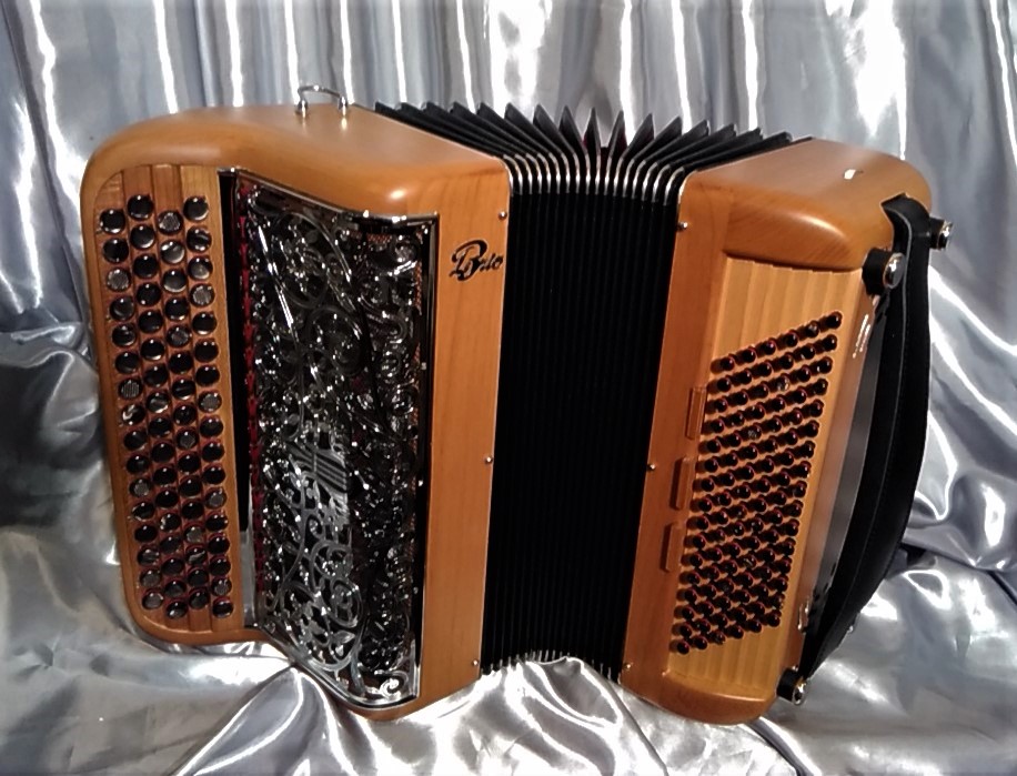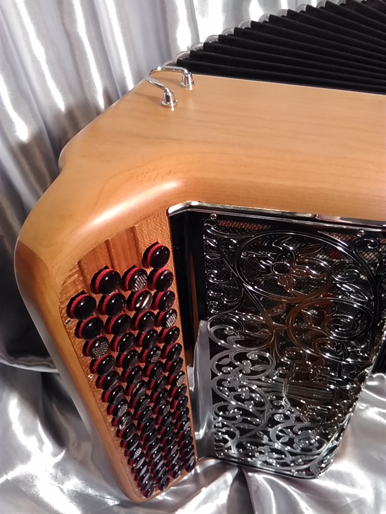 Idéal pour accompagner, jouer variétés, jazzy ou musette selon l'accord choisi et s'attaquer à un répertoire très varié. Avec 6 registres automatiques derrière le clavier offrant 5 sonorités différentes. La voix grave (Basson) en boite de résonance est particulièrement veloutée, douce et chaude. Les flûtes hors boite apportent une présence et une puissance qui s'harmonise à merveille avec le basson. L'accordage "américain" est installé sur ce modèle, un accordage différent est bien-sûr possible (classic, swing, céleste, musette...).