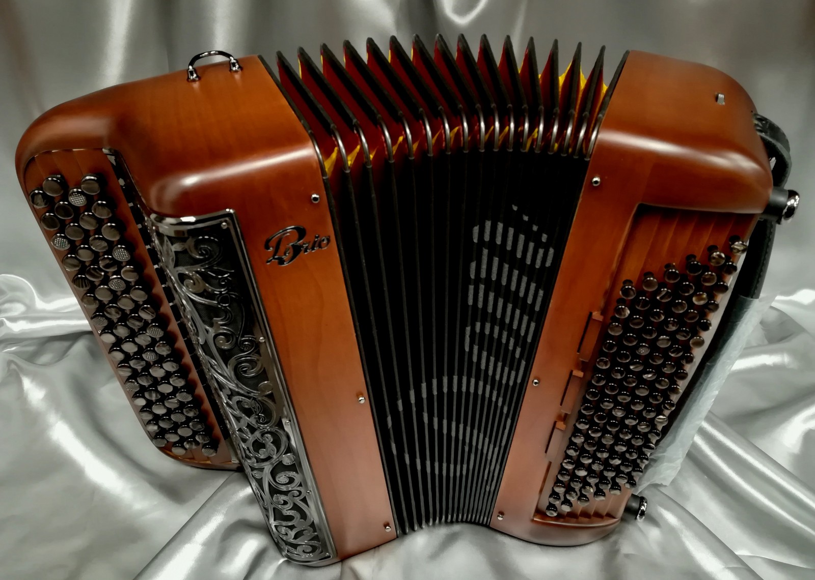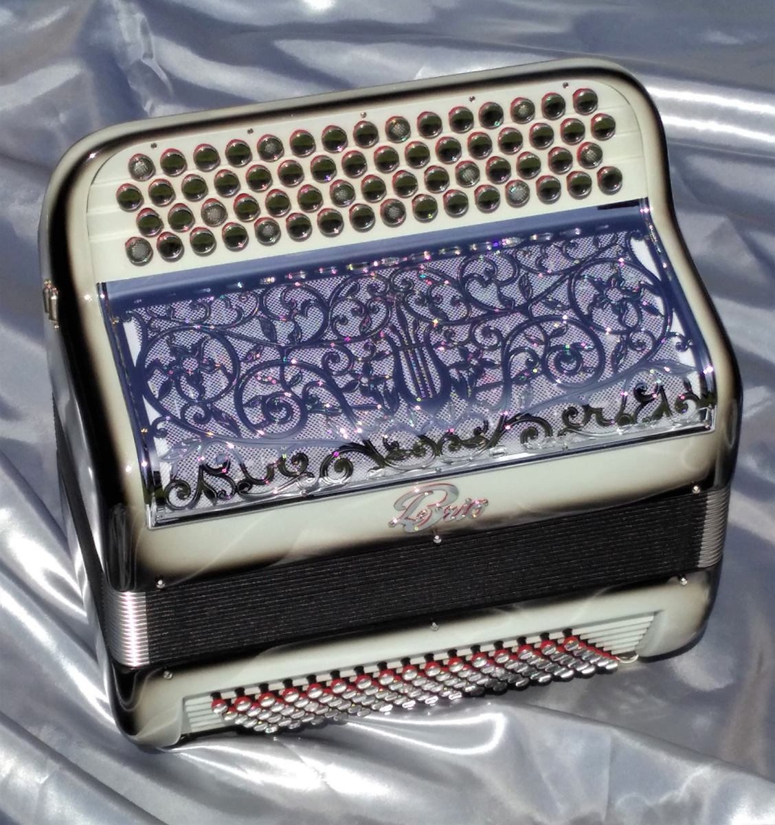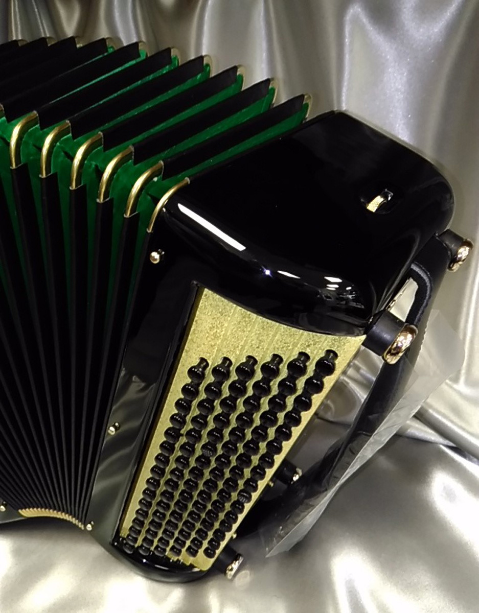 Idéal pour accompagner, jouer variétés, jazzy ou musette selon l'accord choisi et s'attaquer à un répertoire très varié. Avec 6 registres automatiques derrière le clavier offrant 5 sonorités différentes. La voix grave et puissante du Basson, donne un « bando » fort et percutant. L'accordage "américain" est installé sur ce modèle, un accordage différent est bien-sûr possible (classic, swing, céleste, musette...).