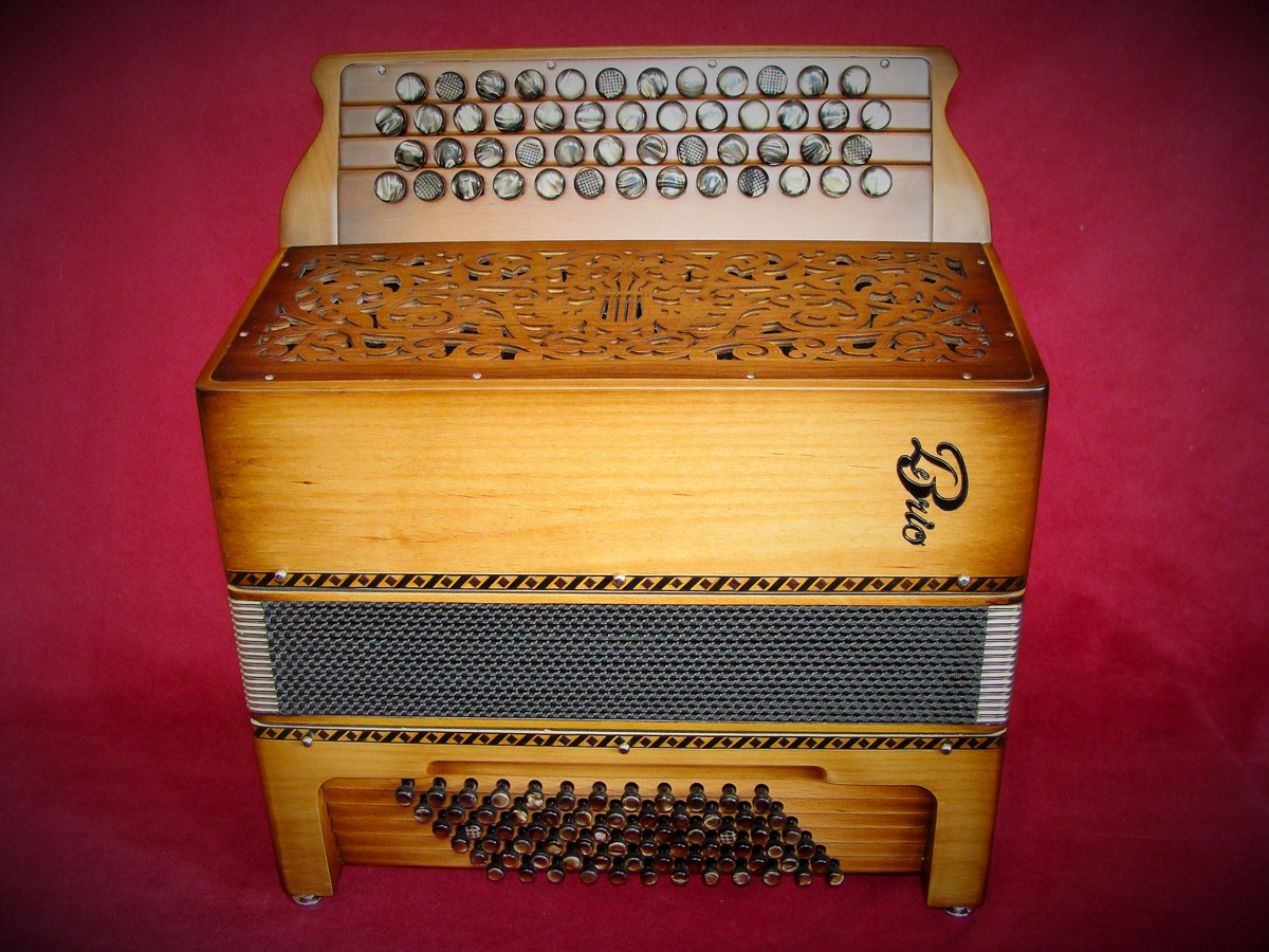 Au chant : 4 rangs pour 41 notes (52 touches), 5 rangs en option.