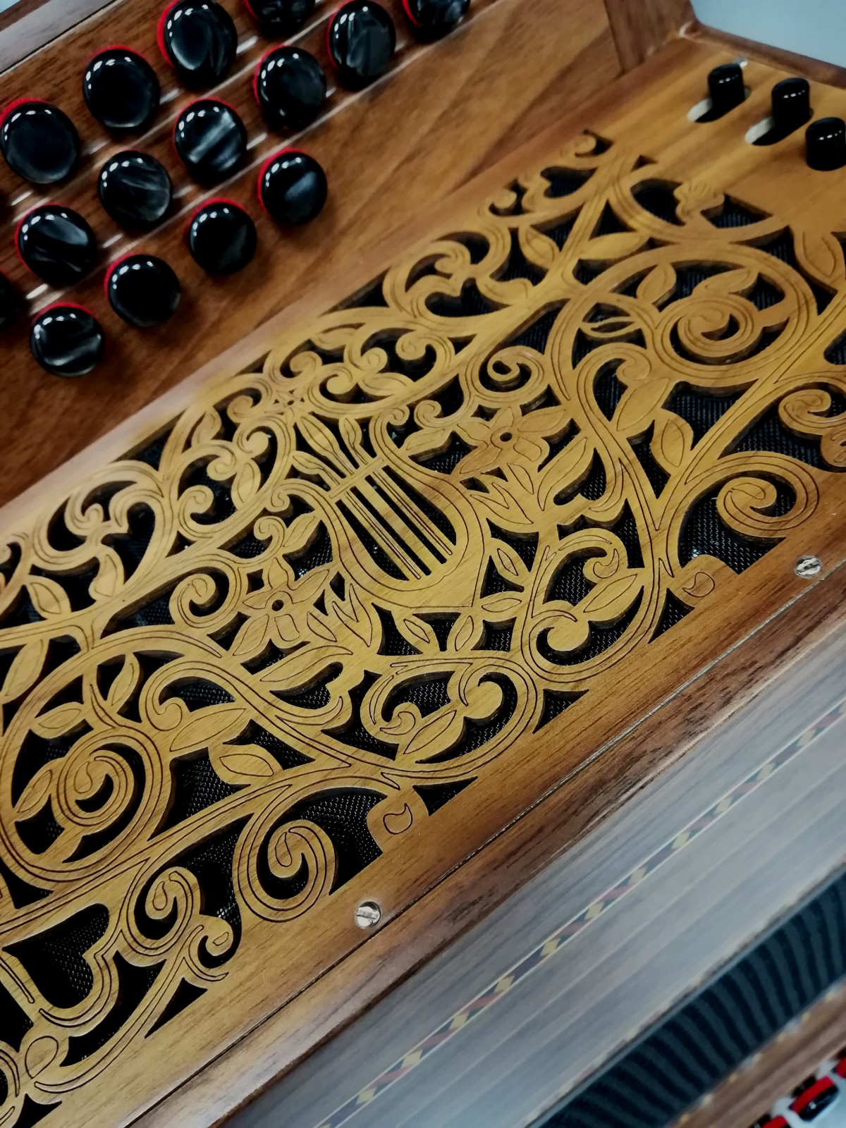 Ce modèle propose un choix de clavier pour 23 notes réelles ainsi qu'un registre main gauche permettant la suppression des tierces. 3 voix au chant et 3 registres situés sur la grille permettant 5 sonorités différentes (et non une tirette pour 2 sonorités).
