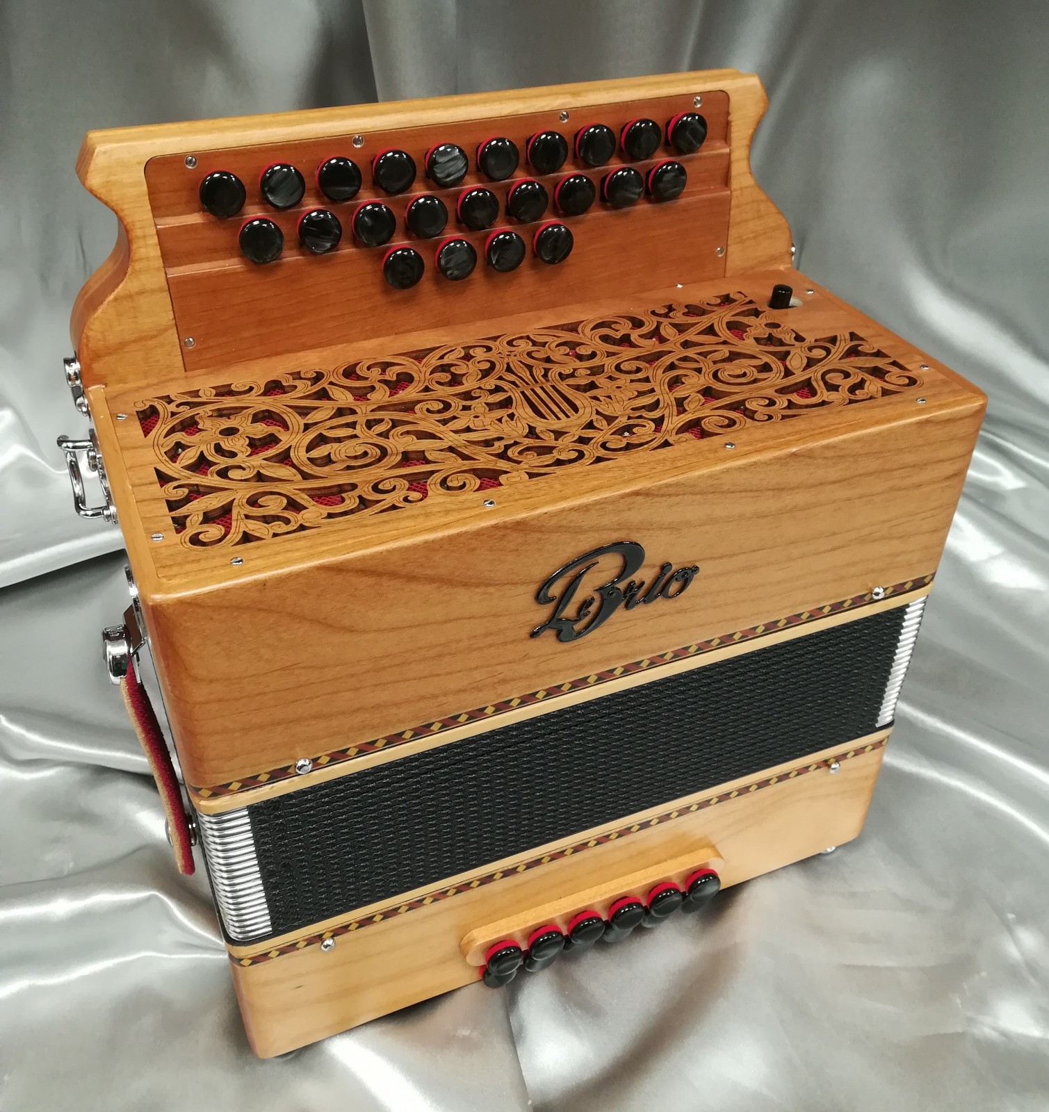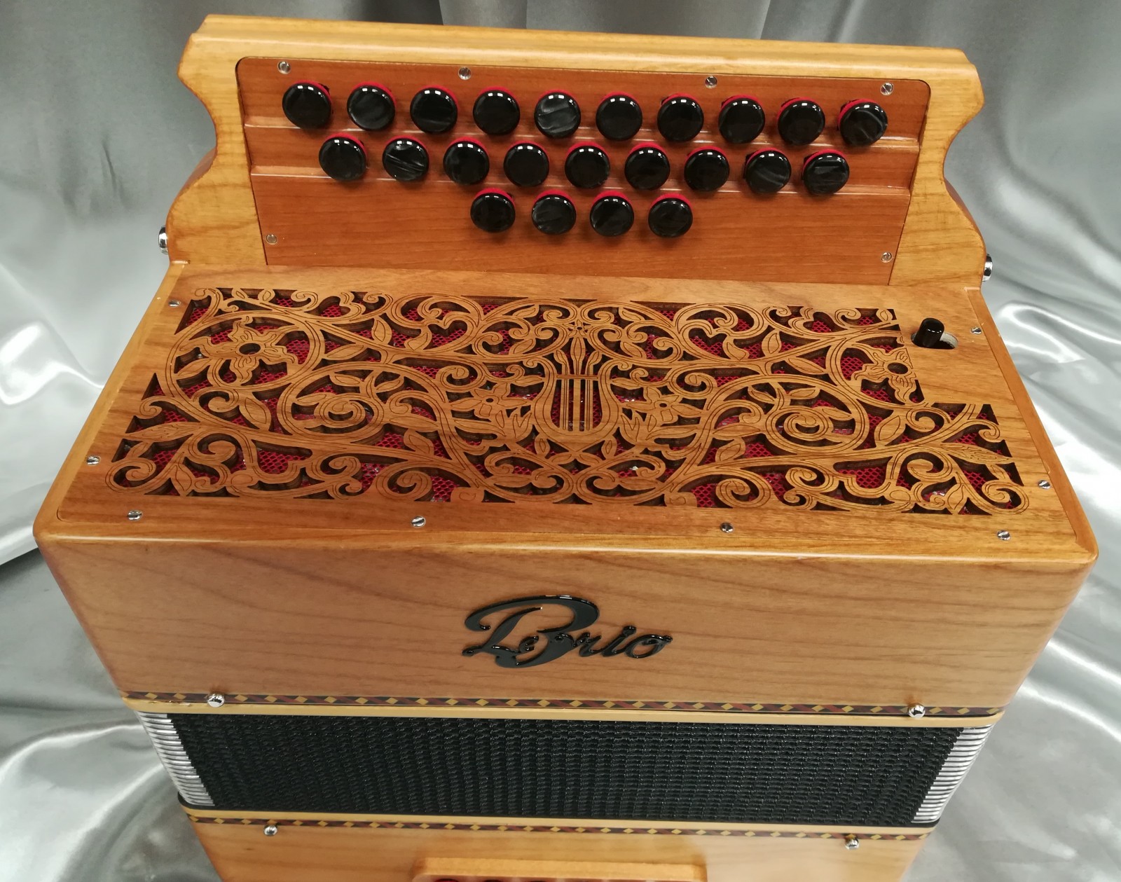 Ce modèle propose un choix de clavier pour 23 notes réelles ainsi qu'un registre main gauche permettant la suppression des tierces. En option, un registre au chant situé sur la grille, permet 2 sonorités : Flûte et 2 voix médium. Les musiques SD, TAM ou A Mano peuvent être installées.