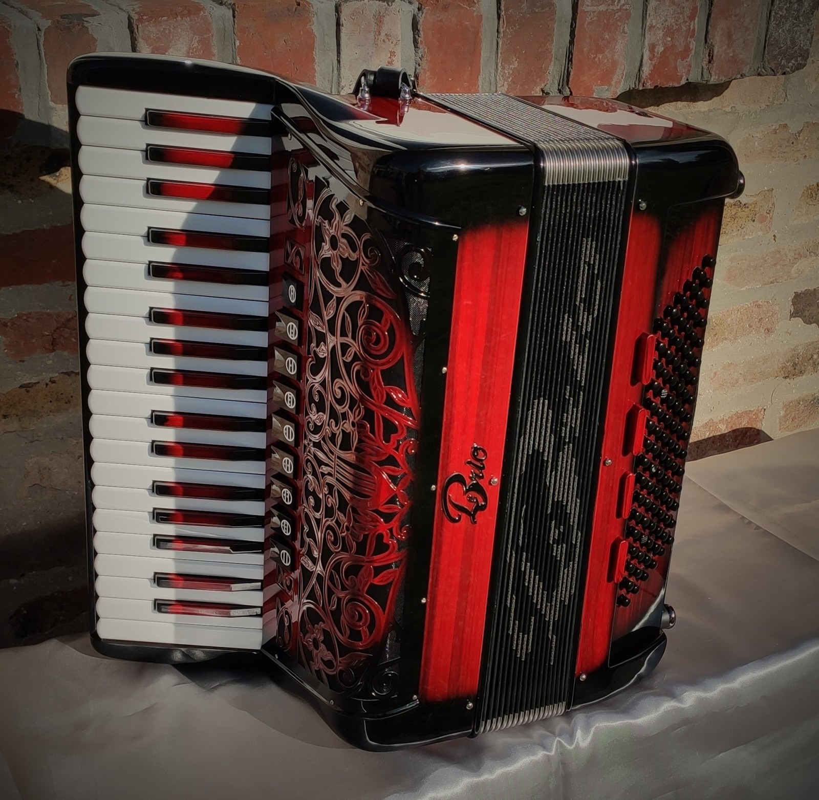 Idéal pour accompagner, jouer variétés, jazzy ou musette selon l'accord choisi et s'attaquer à un répertoire très varié. Avec 13 registres automatiques offrant sonorités différentes, un rappel et un registre de coupure. La voix grave et puissante du Basson, donne un « bando » fort et percutant. Retrouver également la sonorité "orgue ou quinzième", l'accordage 2 voix médium "américain" est installé sur ce modèle, un accordage différent est bien-sûr possible (classic, swing, céleste, musette...).