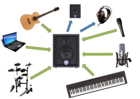 Il vous offre aussi une connectique très complète avec plusieurs entrées et sorties symétriques, des équaliseurs 3 bandes, des alimentations fantômes, une réverbe DSP numérique, un anti feed back et un ground lift, afin de connecter vos instruments acoustiques, vos micros dynamiques, vos micros statiques et même une source stéréo en entrée/sortie.