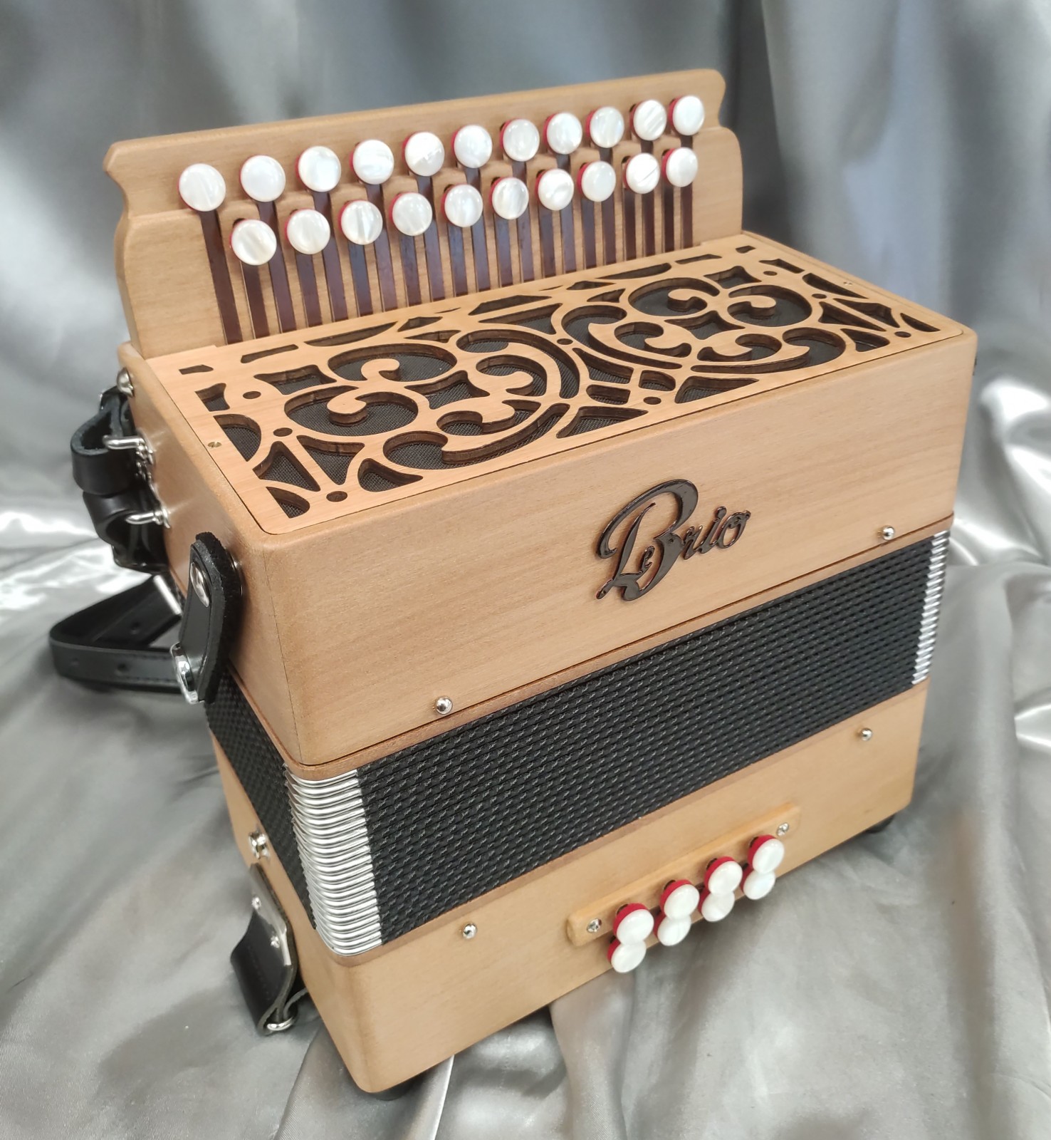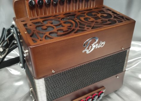 Venez vite découvrir et essayer le "Diato Trad", 2 rangs et 2 voix au chant, pour 21 touches et 8 basses". Modèle en bois massif avec clavier traditionnel au chant. 2 voix medium avec une musique SD (TAM en option).
