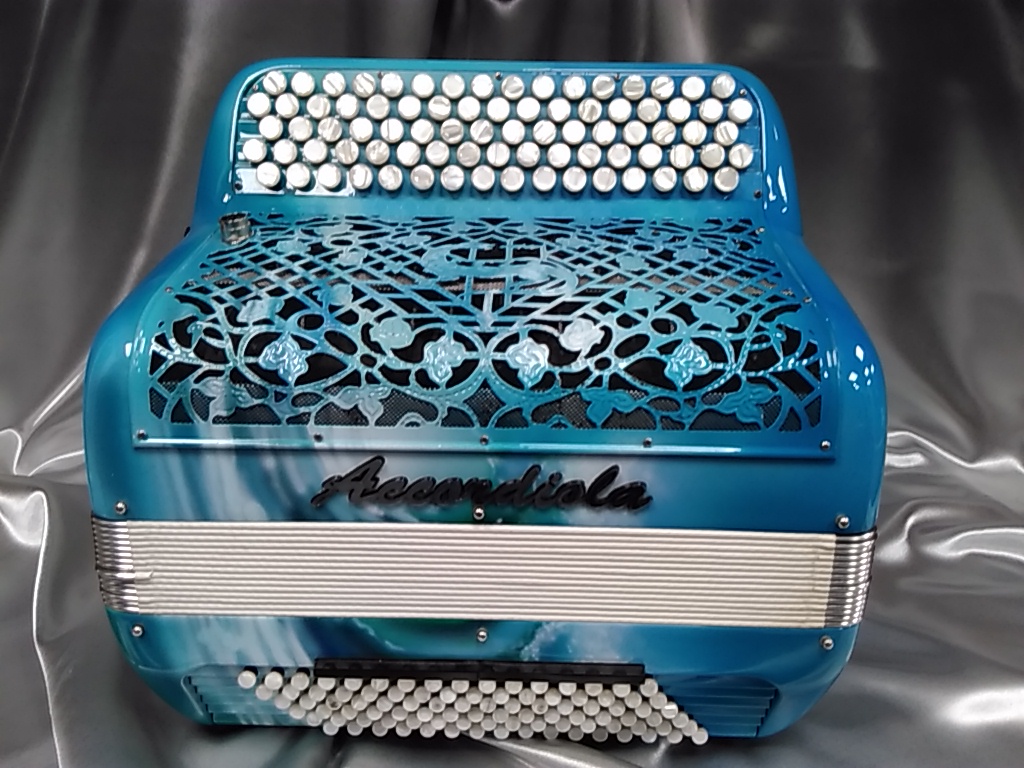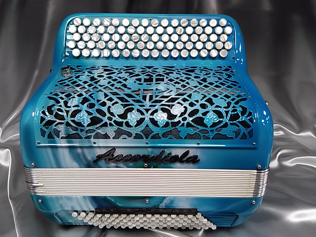 Main droite : 4 voix avec double basson en boite de résonance, 5 rangs, 10 registres doubles