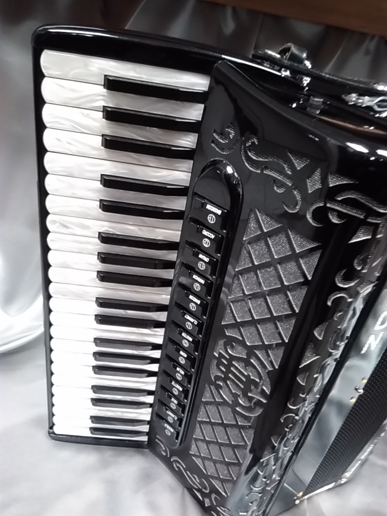 Main droite : 4 voix, 41 touches, Double boite de résonance, 13 registres avec flûte et basson en boite.