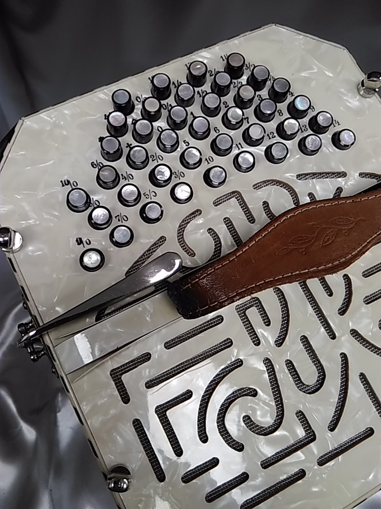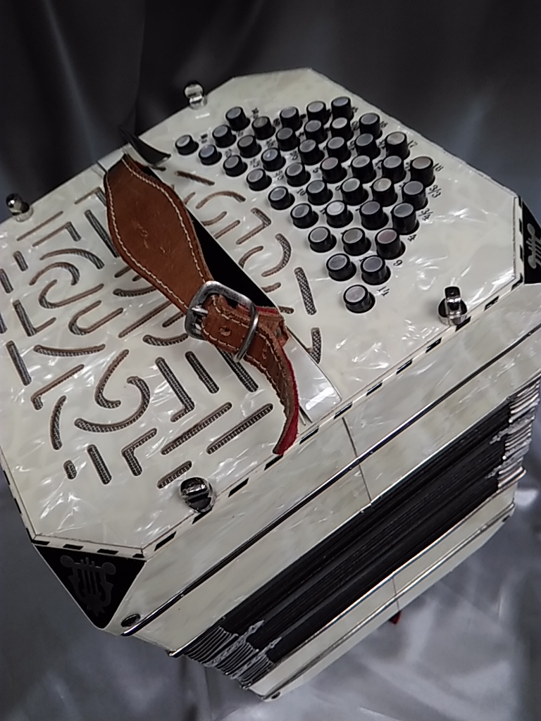 Main gauche : 5 rangs pour 33 boutons, étendue : fa# - do#
