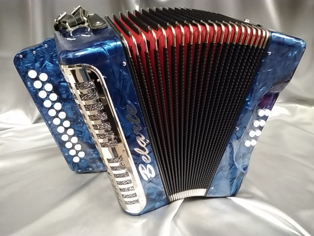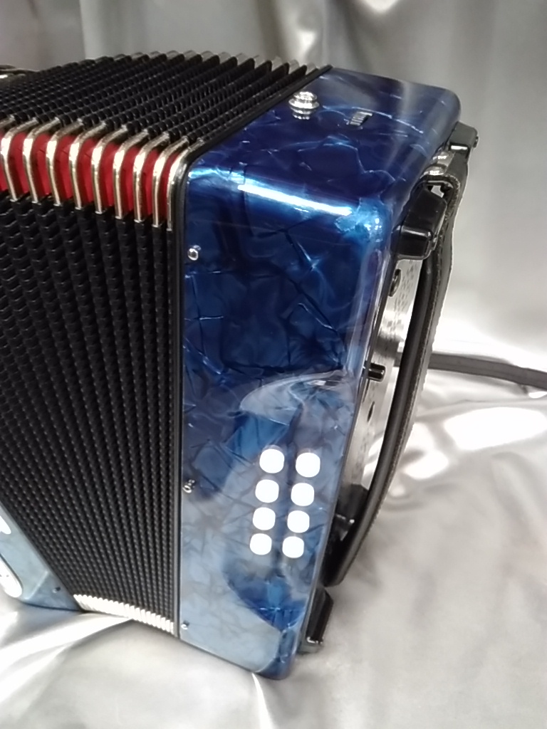 Main droite : Tonalité B/C, 3 Voix, 2 rangs pour 21 touches.