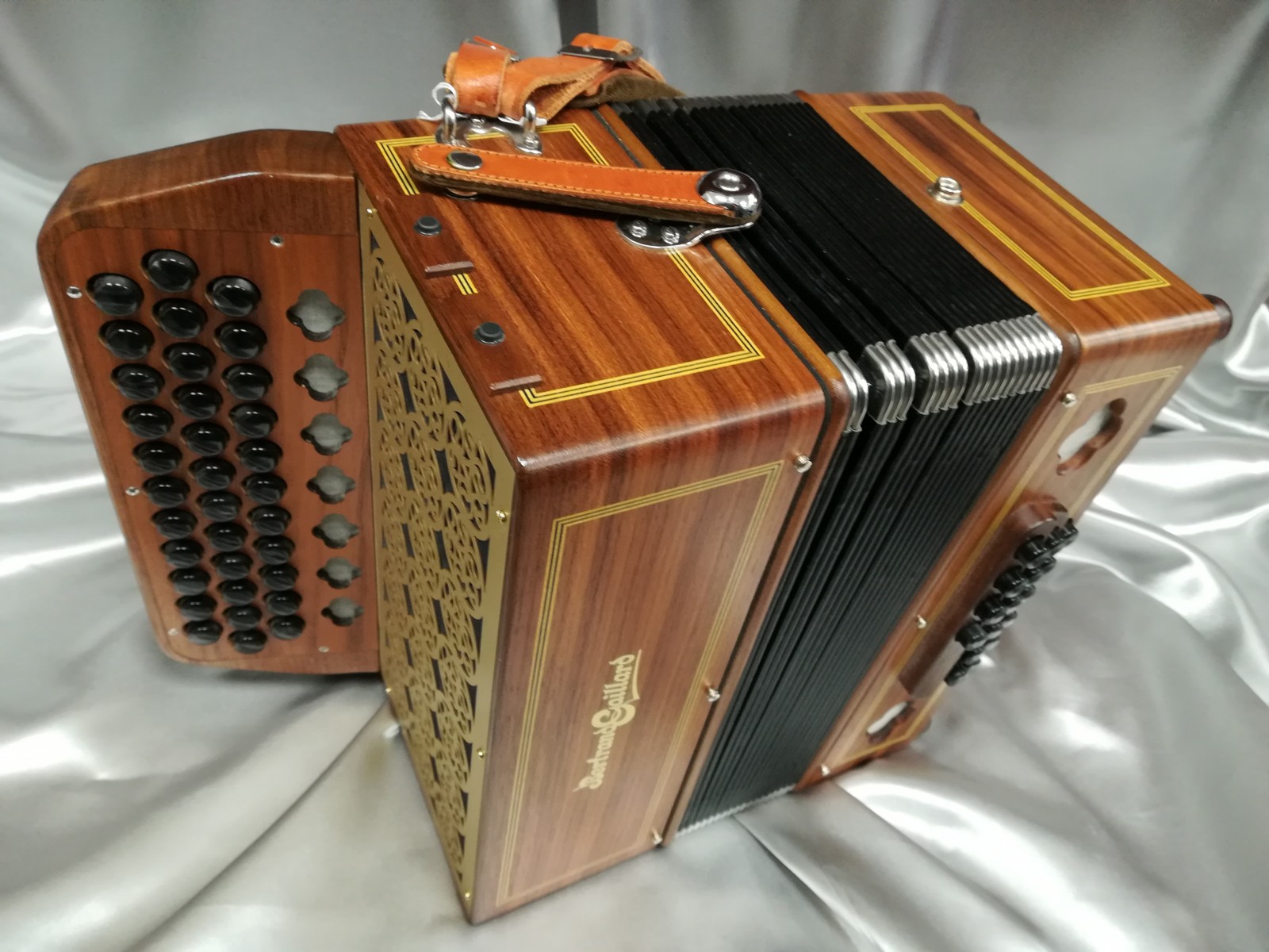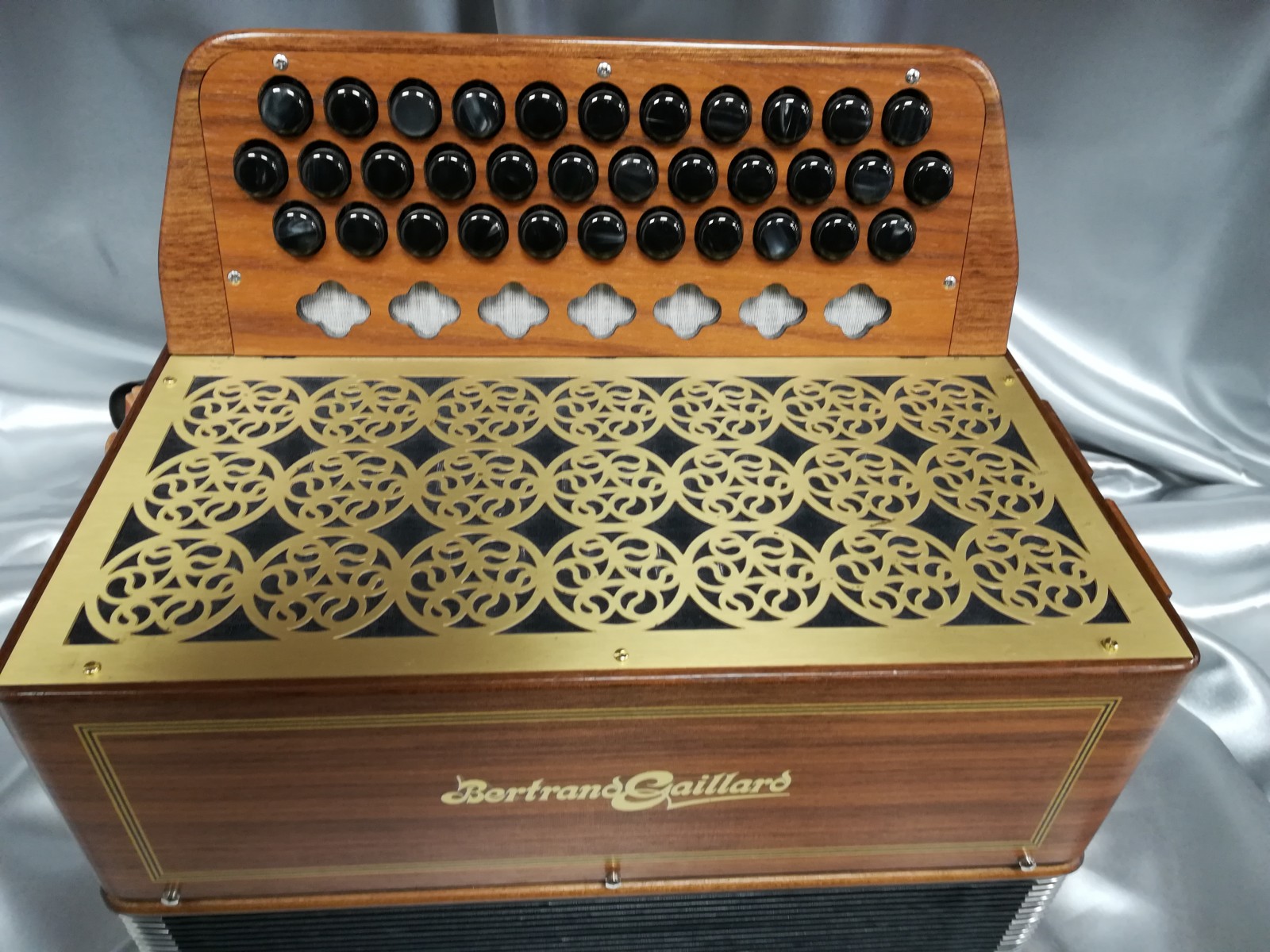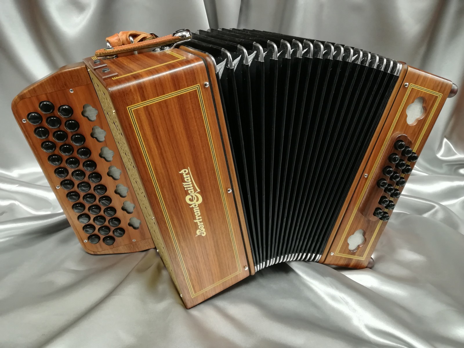 Modèle Bertrand Gaillard "Saphir", 2 voix bandonéon en C/F et 16 basses pour ce modèle en noyer massif. A saisir !
