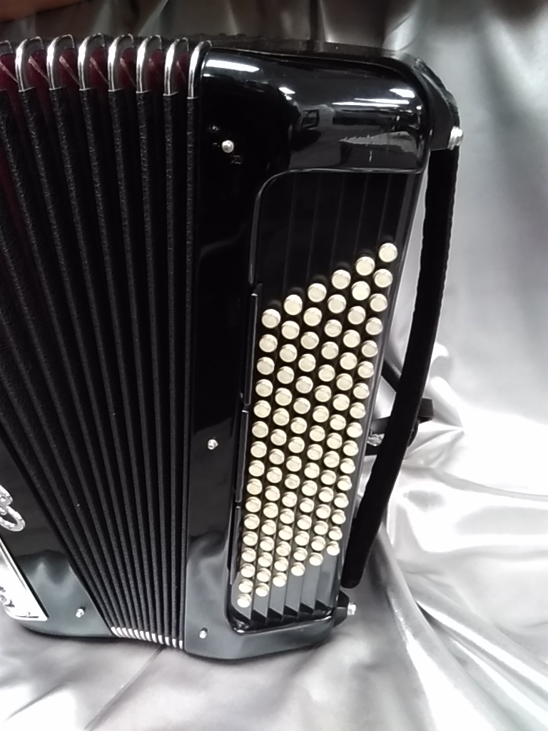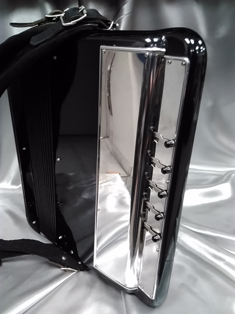 Modèle compact 3 voix avec boîte de résonance. 5 rangées au chant, accordage 2 voix musette.